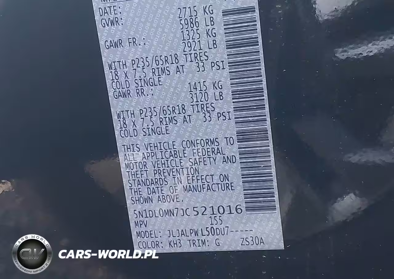 IAAI Nr: I-44334116 VIN: 5N1DL0MN7JC521016 Port: Elizabeth, NJ