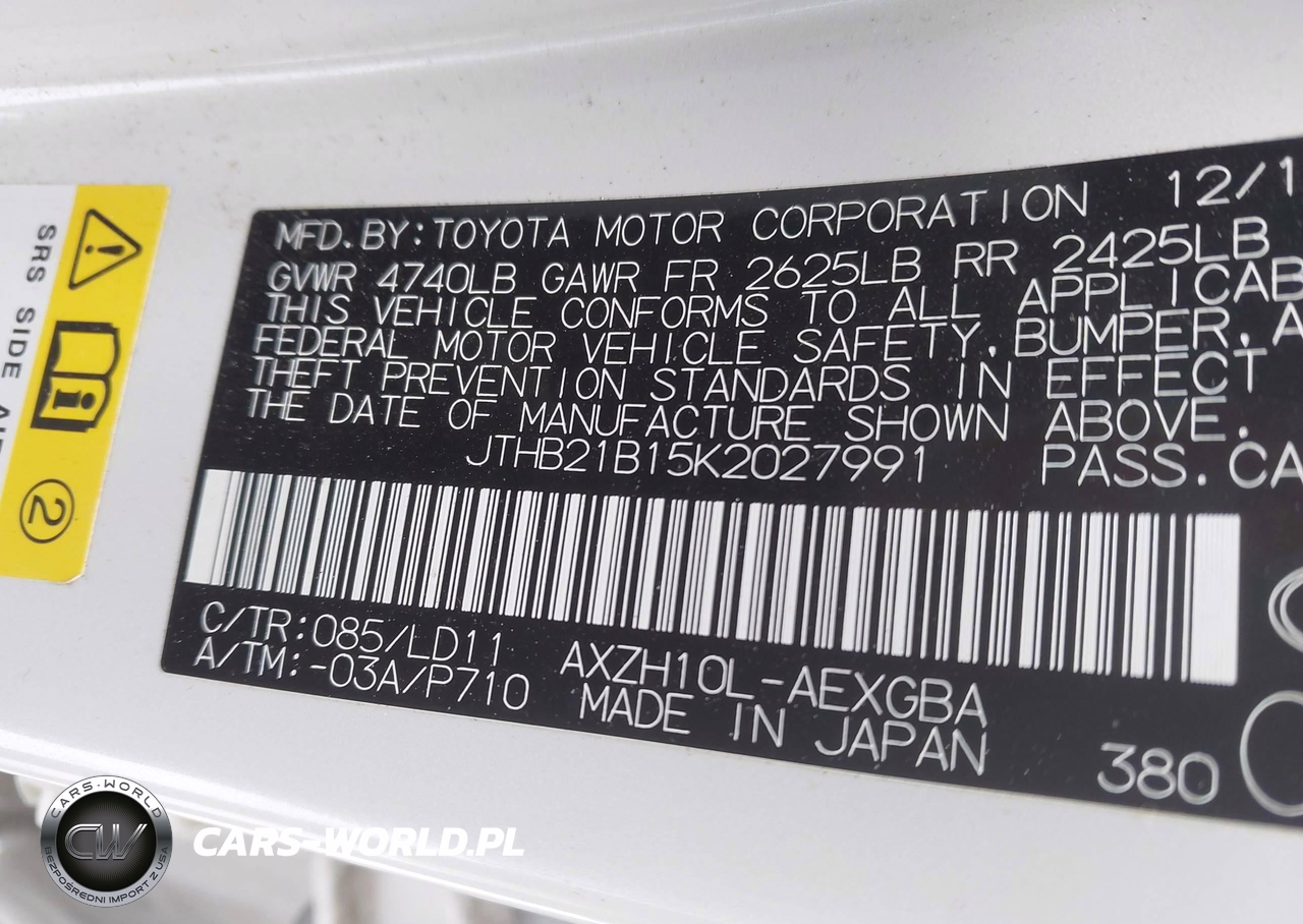 IAAI Nr: I-44334123 VIN: JTHB21B15K2027991 Port: Elizabeth, NJ