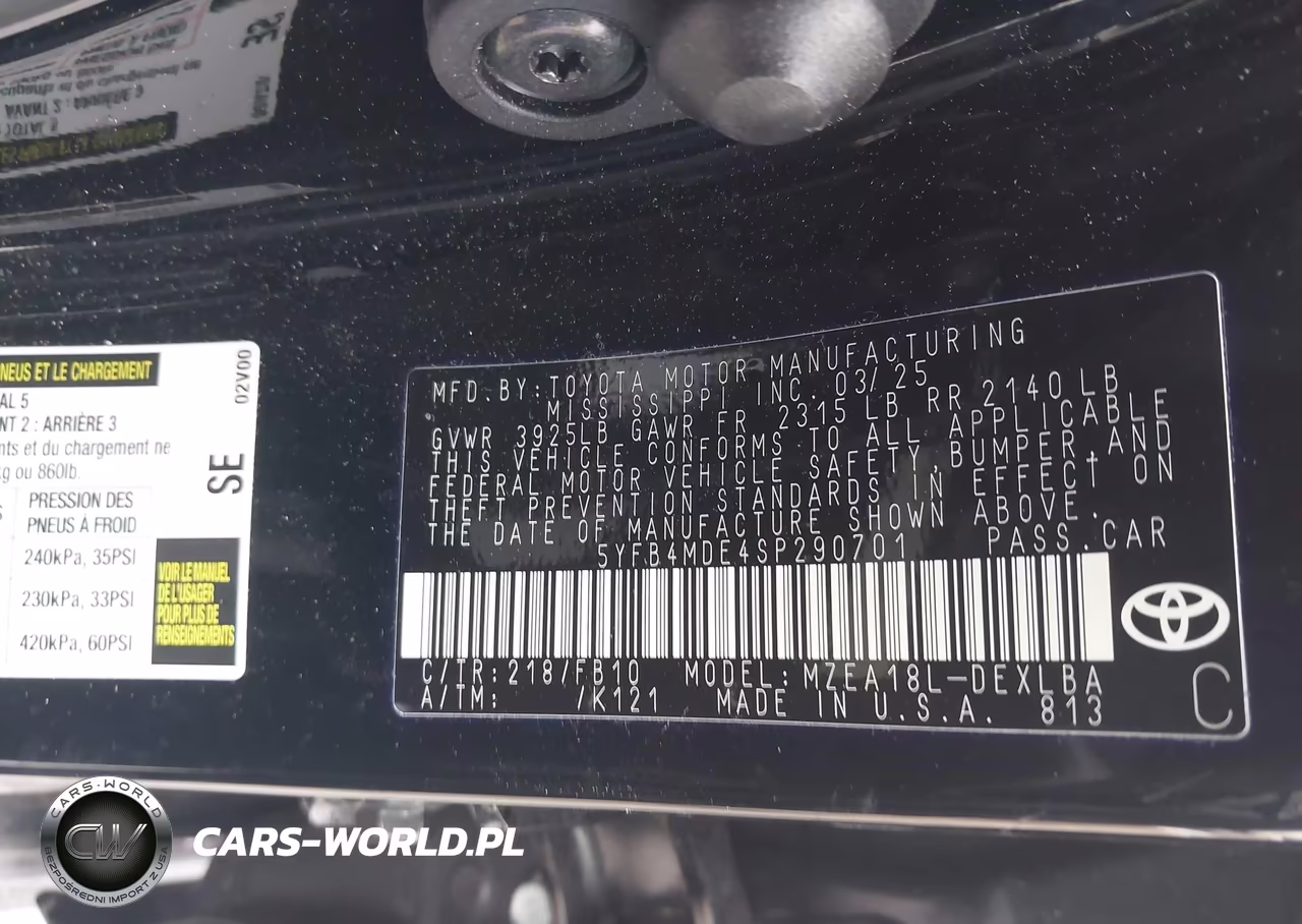 IAAI Nr: I-44334713 VIN: 5YFB4MDE4SP290701 Port: Indianapolis, IN