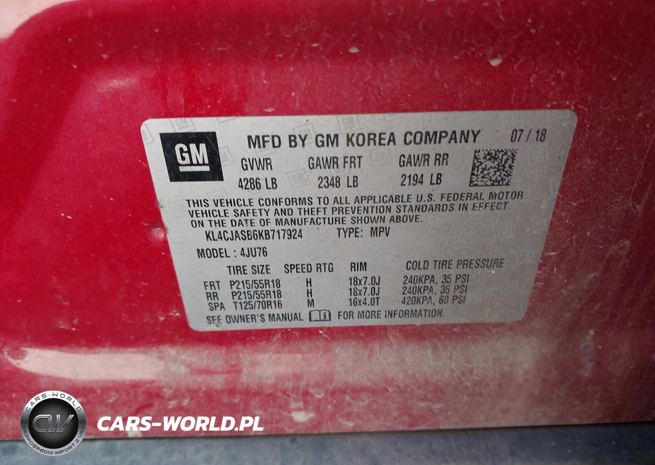 IAAI Nr: I-44334999 VIN: KL4CJASB6KB717924 Port: Savannah, GA