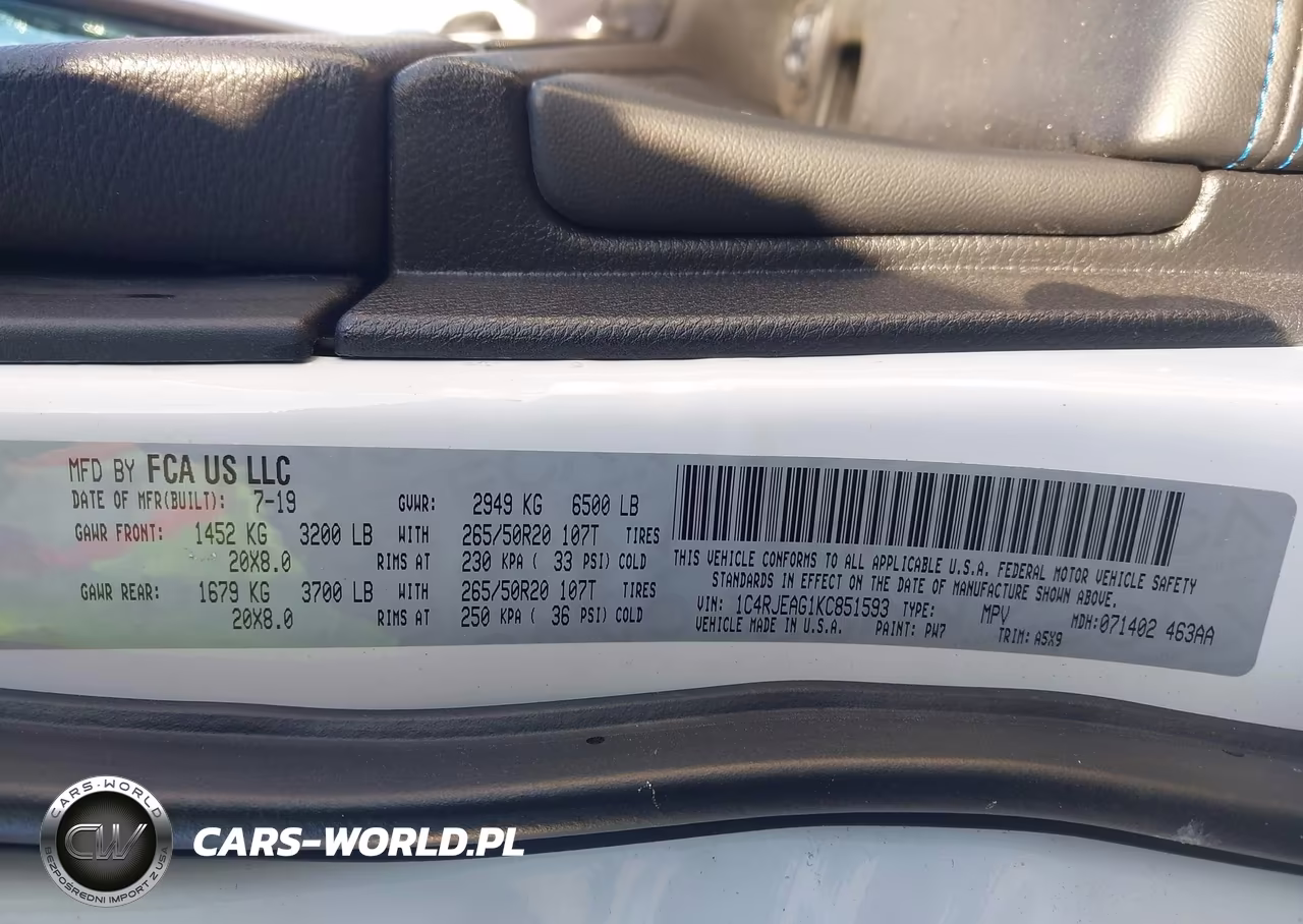 IAAI Nr: I-44335079 VIN: 1C4RJEAG1KC851593 Port: Houston, TX