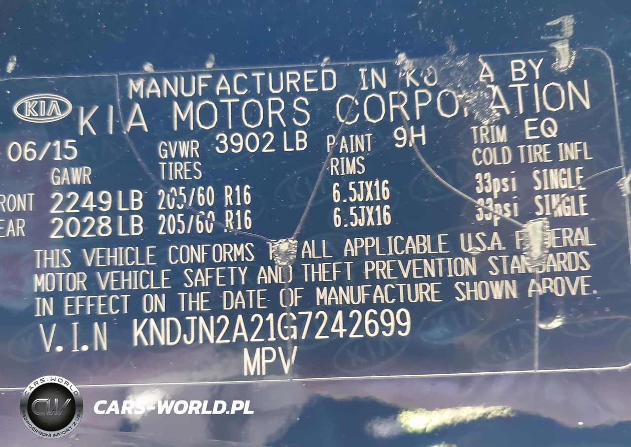IAAI Nr: I-44335761 VIN: KNDJN2A21G7242699 Port: Elizabeth, NJ
