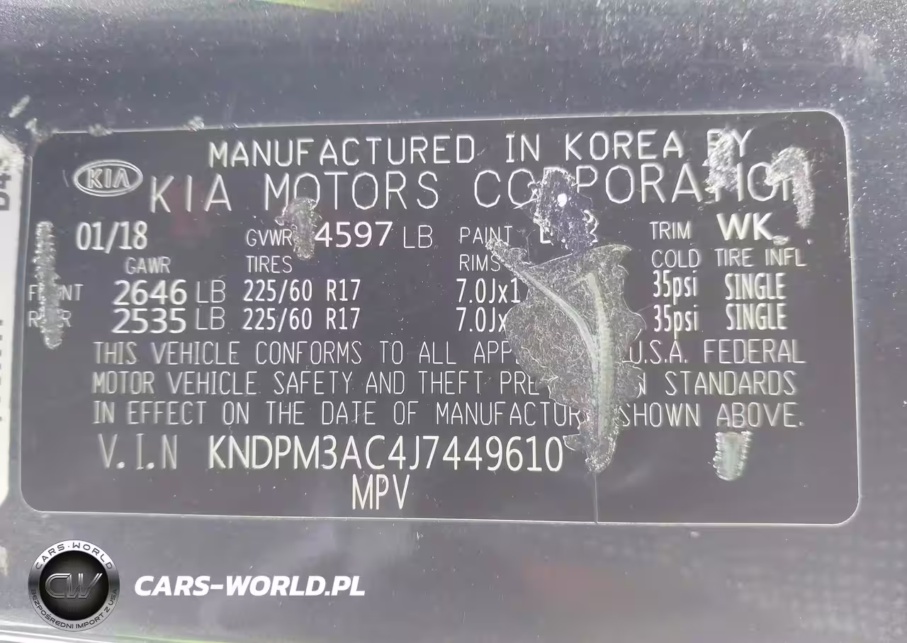 IAAI Nr: I-44337555 VIN: KNDPM3AC4J7449610 Port: Elizabeth, NJ