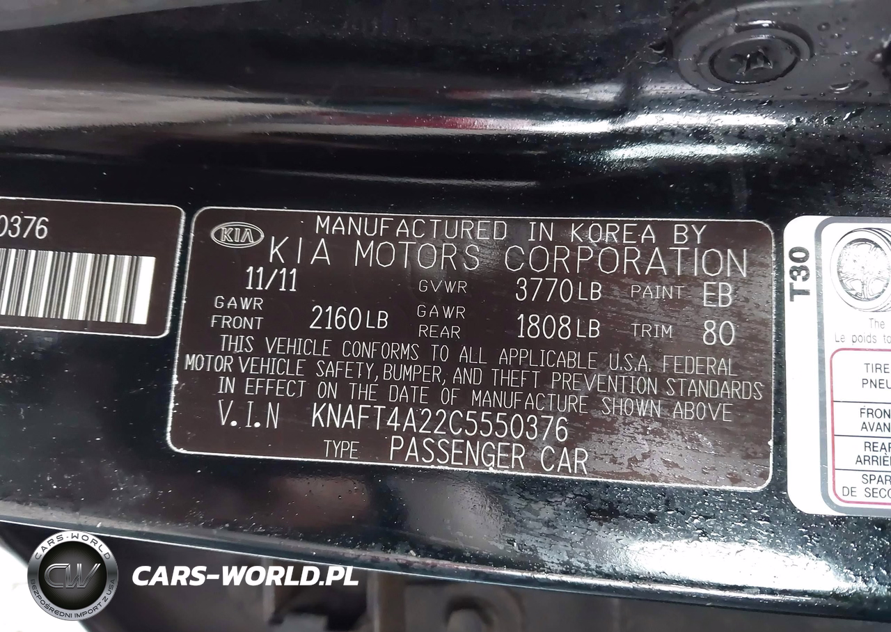 IAAI Nr: I-44337804 VIN: KNAFT4A22C5550376 Port: Los Angeles, CA
