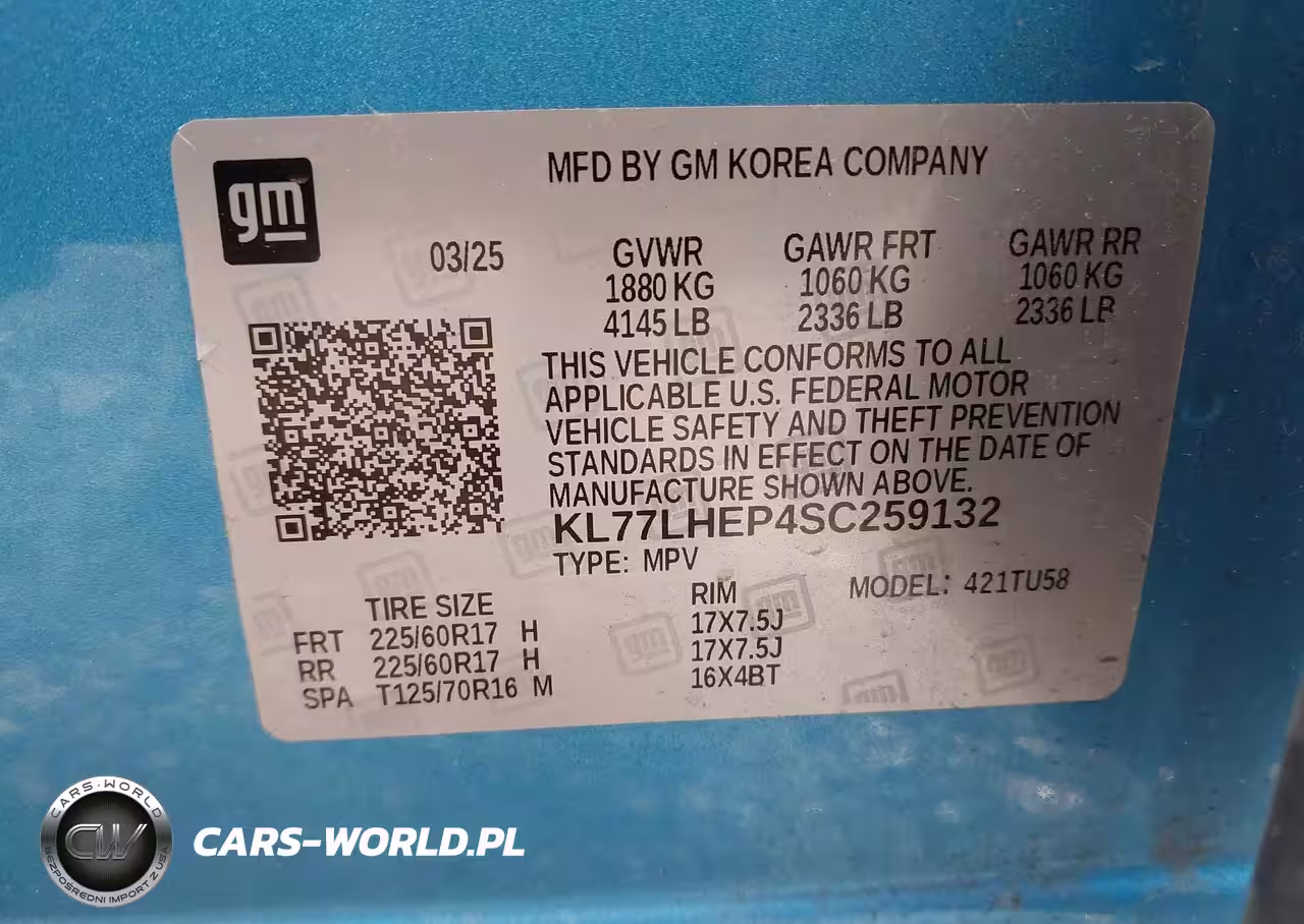 IAAI Nr: I-44338899 VIN: KL77LHEP4SC259132 Port: Indianapolis, IN
