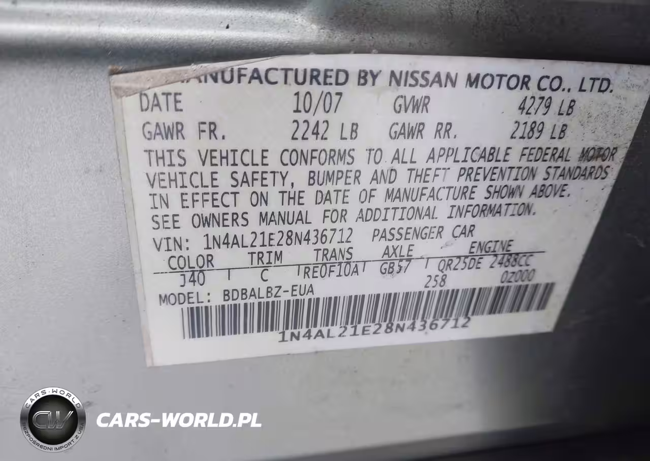 IAAI Nr: I-44339876 VIN: 1N4AL21E28N436712 Port: Elizabeth, NJ