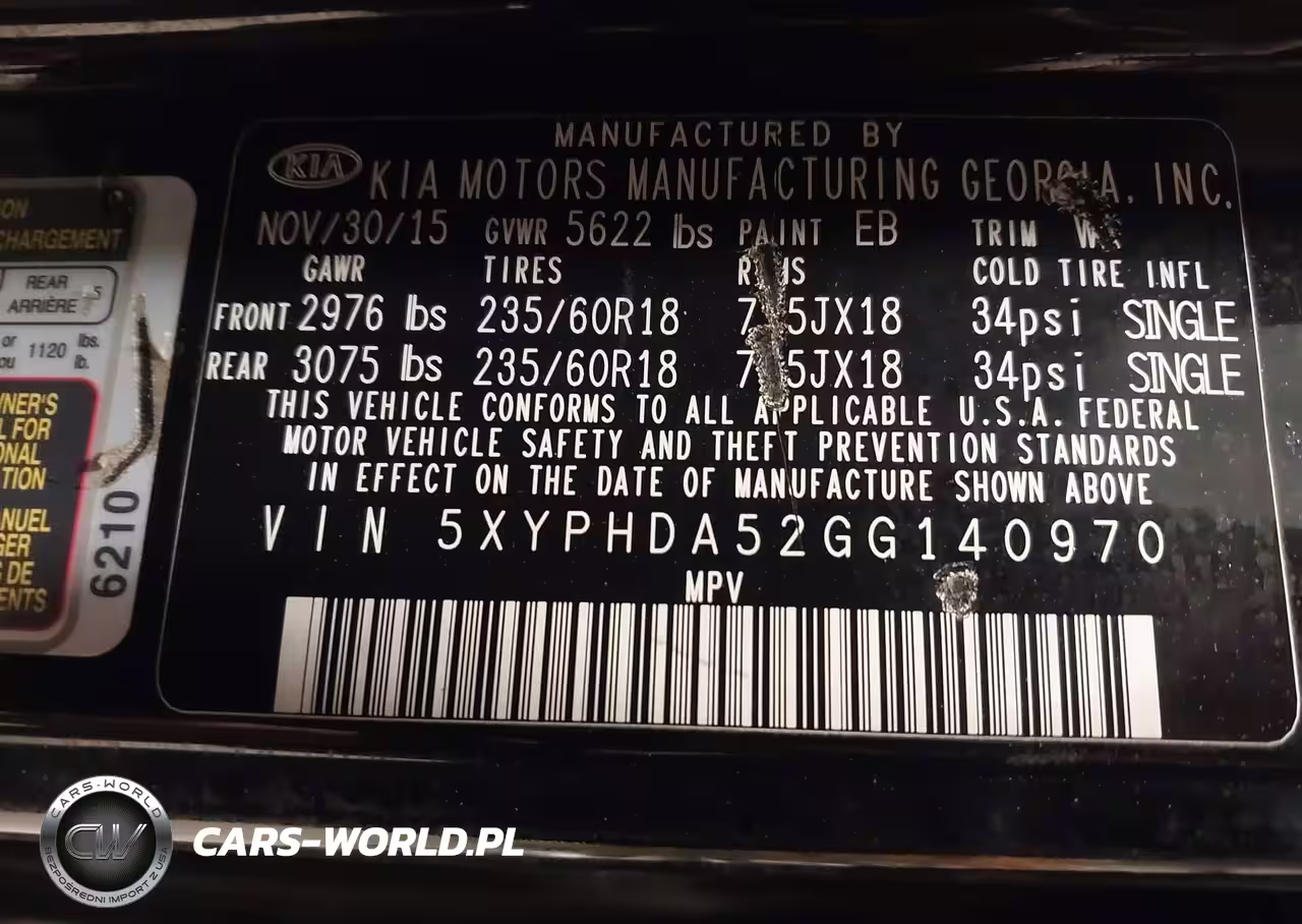 IAAI Nr: I-44340313 VIN: 5XYPHDA52GG140970 Port: Elizabeth, NJ
