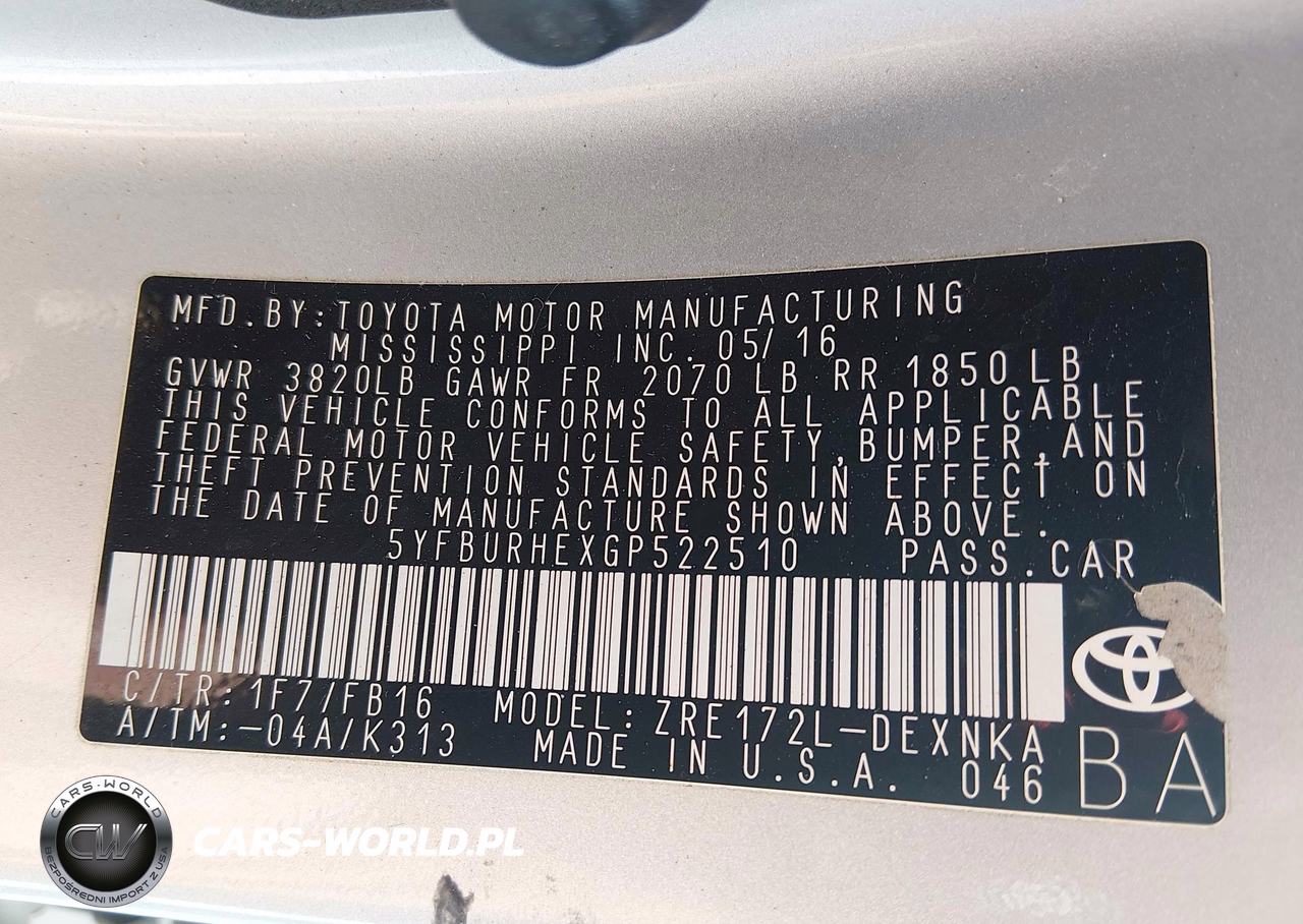 IAAI Nr: I-44340409 VIN: 5YFBURHEXGP522510 Port: Elizabeth, NJ