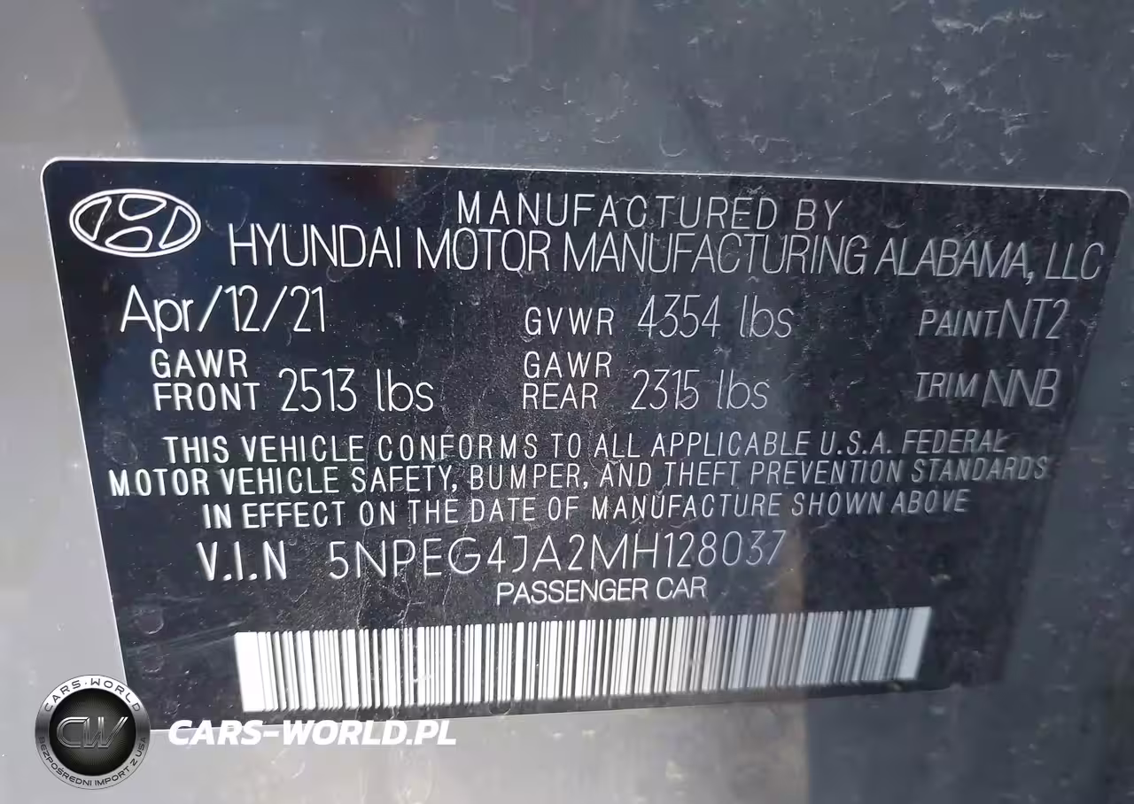 IAAI Nr: I-44340607 VIN: 5NPEG4JA2MH128037 Port: Houston, TX