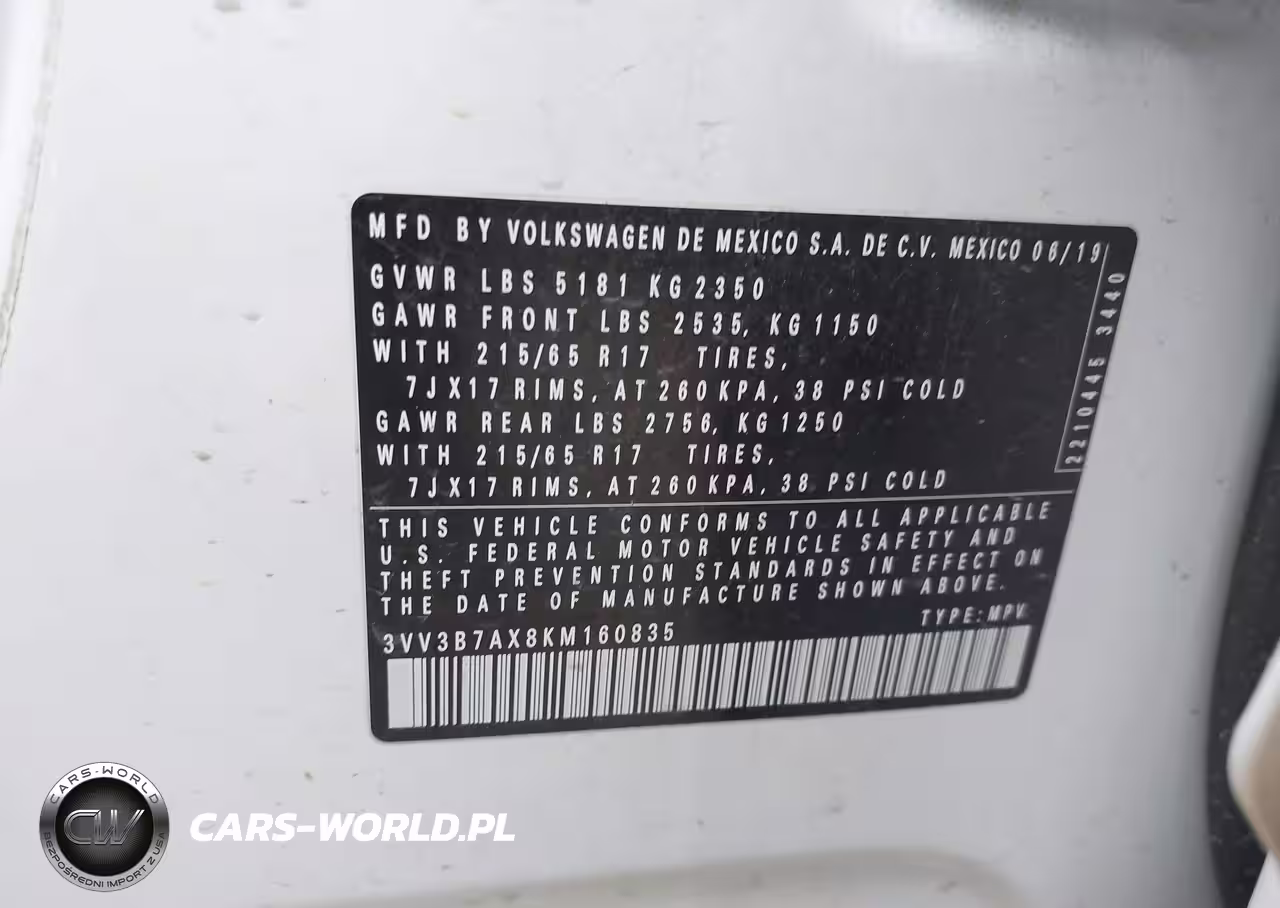 IAAI Nr: I-44341422 VIN: 3VV3B7AX8KM160835 Port: Houston, TX