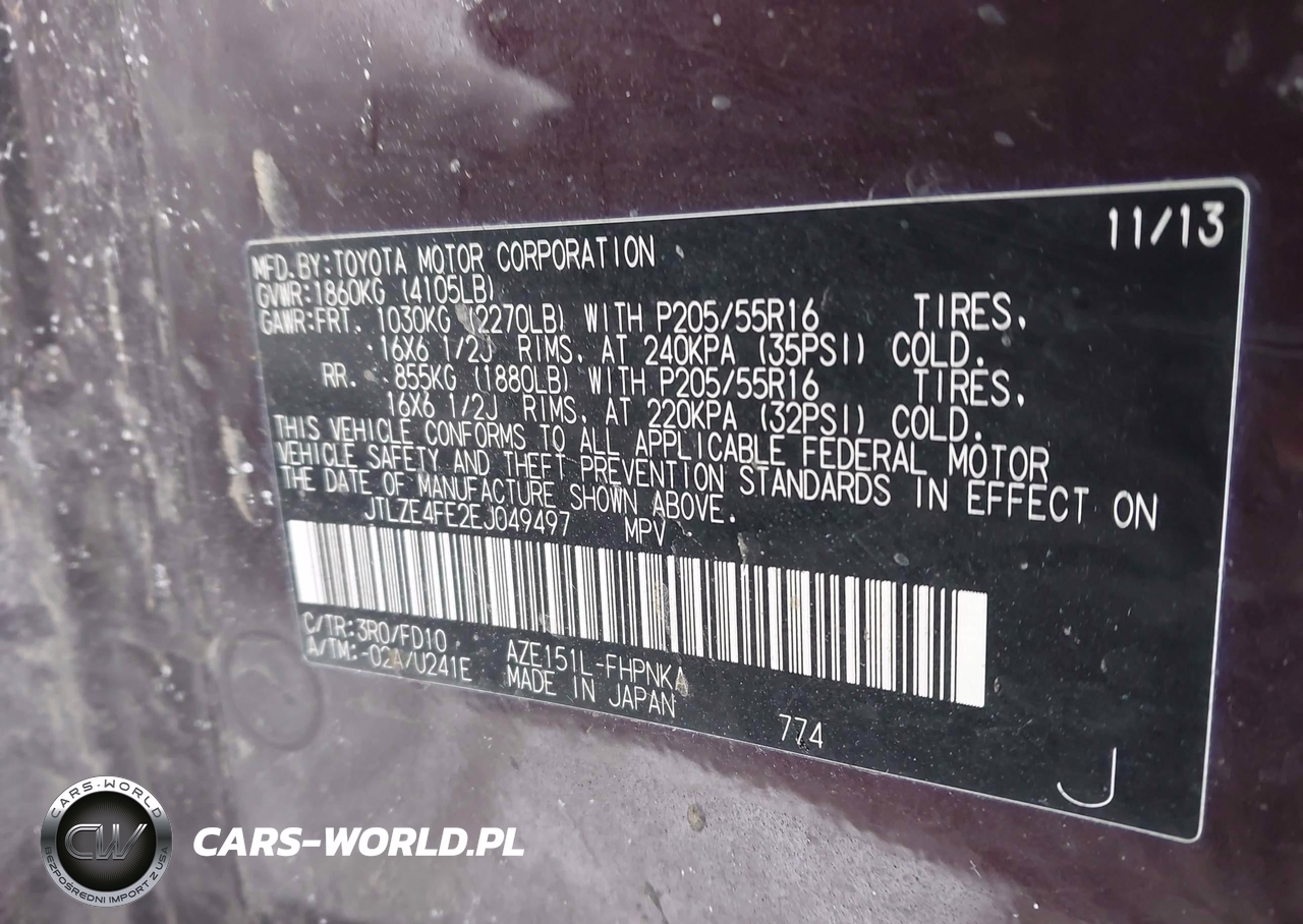 IAAI Nr: I-44344202 VIN: JTLZE4FE2EJ049497 Port: Elizabeth, NJ
