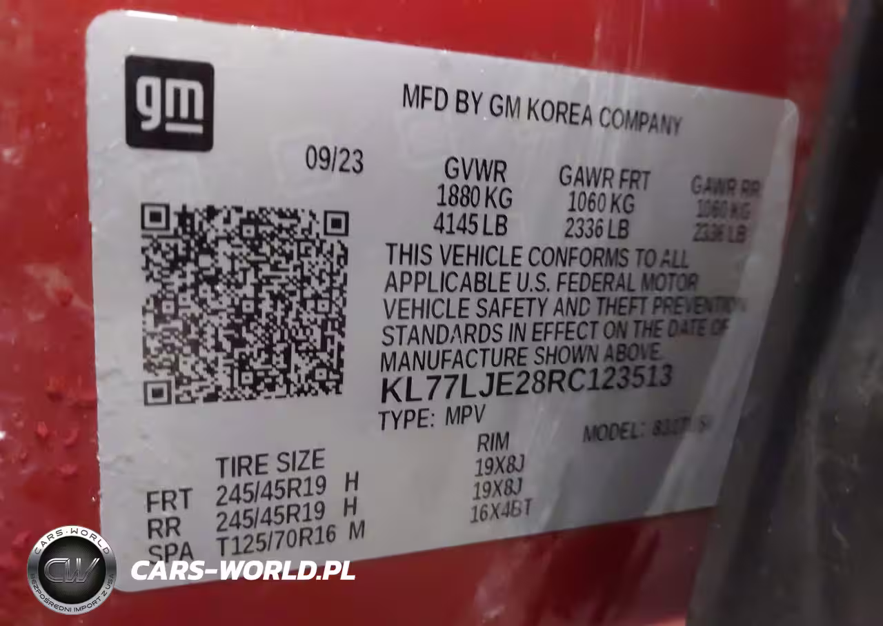 IAAI Nr: I-44344729 VIN: KL77LJE28RC123513 Port: Indianapolis, IN