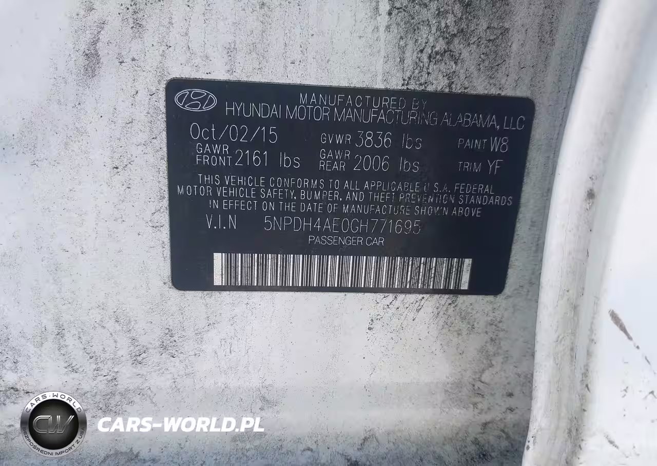 IAAI Nr: I-44346918 VIN: 5NPDH4AE0GH771695 Port: Elizabeth, NJ