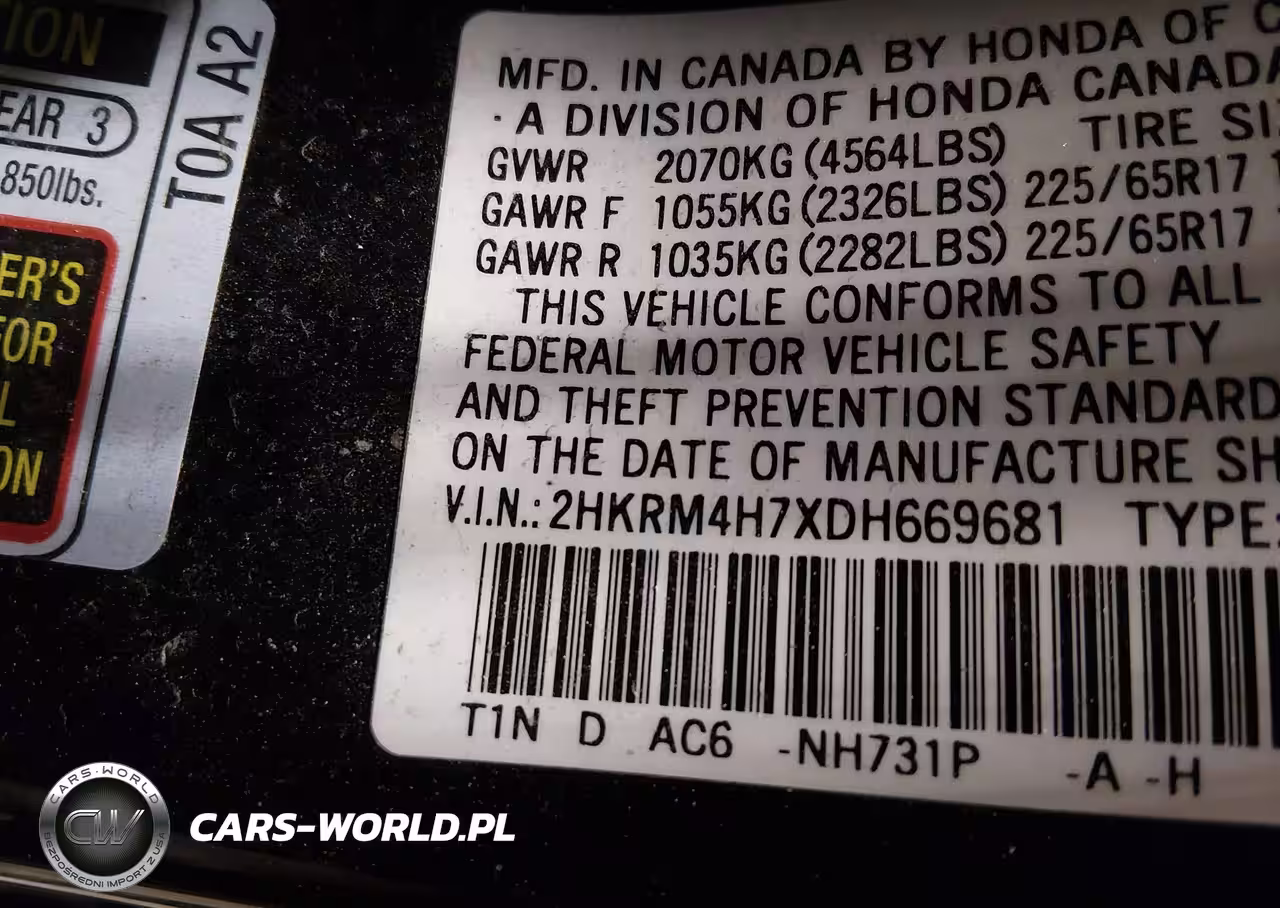 IAAI Nr: I-44346976 VIN: 2HKRM4H7XDH669681 Port: Elizabeth, NJ