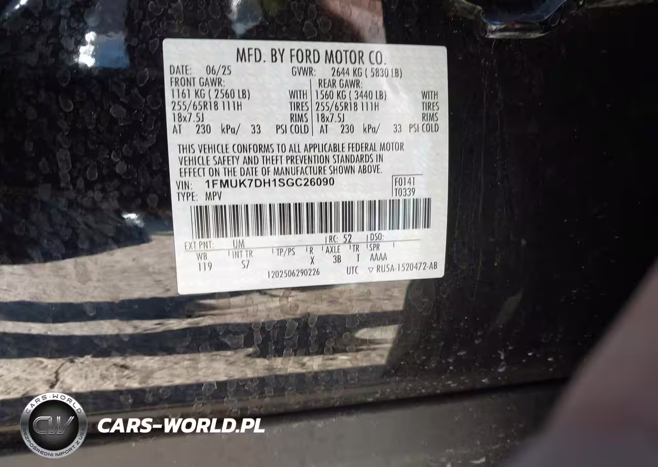 IAAI Nr: I-44348113 VIN: 1FMUK7DH1SGC26090 Port: Houston, TX