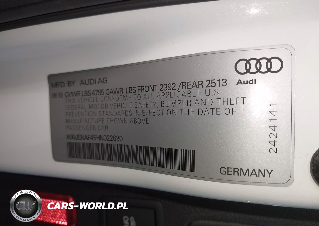 IAAI Nr: I-44348327 VIN: WAUENAF45HN022630 Port: Elizabeth, NJ