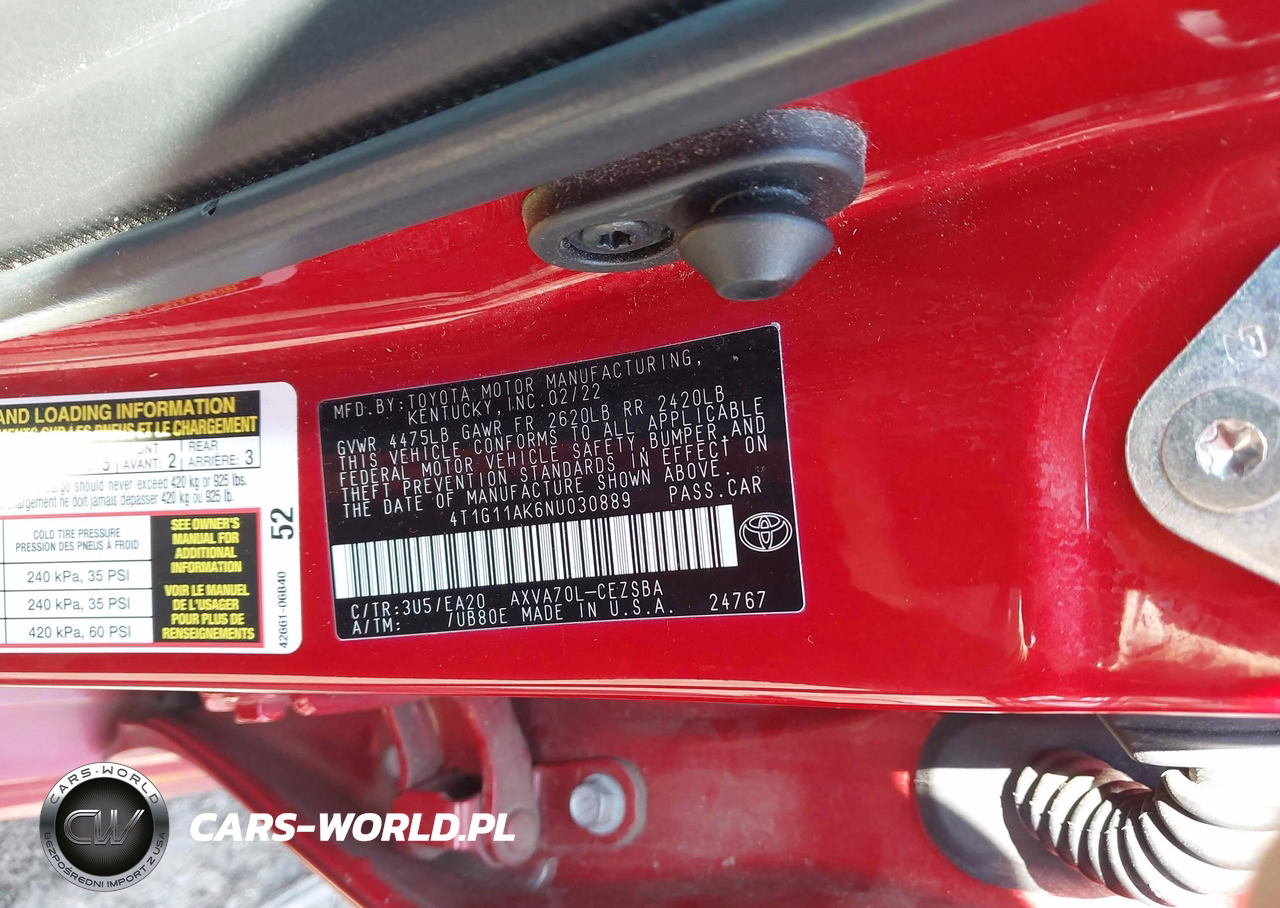 IAAI Nr: I-44348818 VIN: 4T1G11AK6NU030889 Port: Savannah, GA