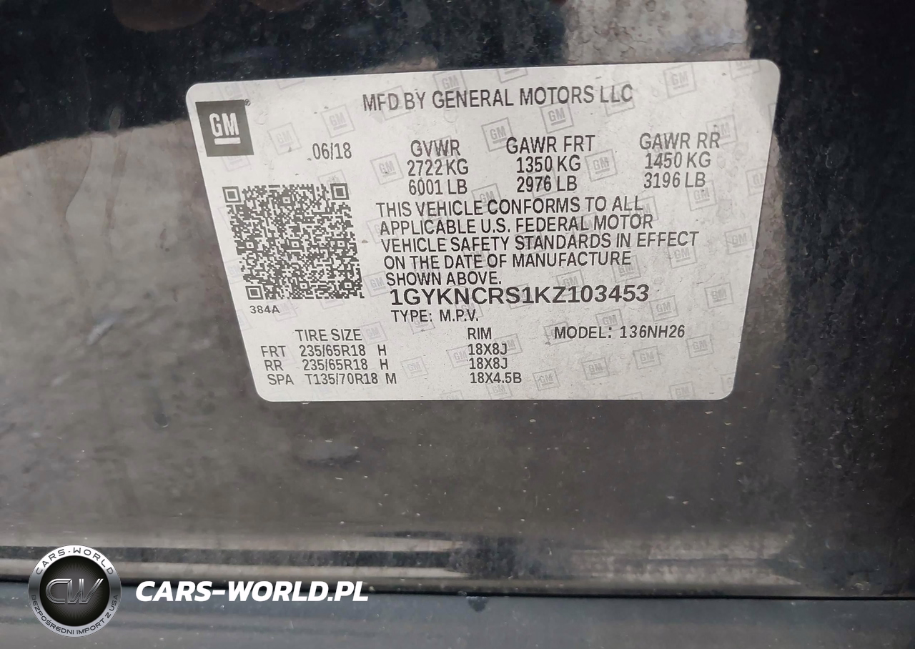 IAAI Nr: I-44349980 VIN: 1GYKNCRS1KZ103453 Port: Houston, TX