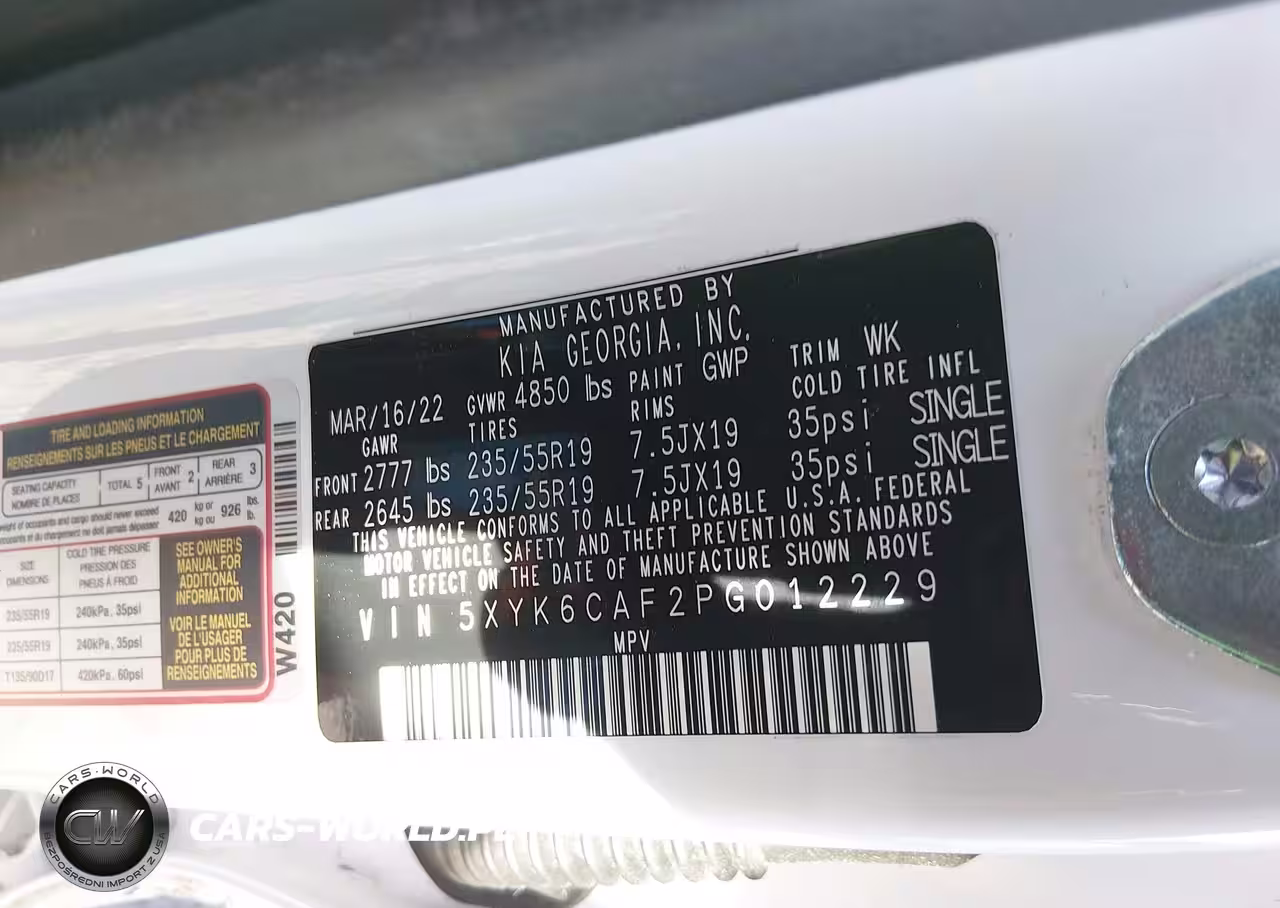 IAAI Nr: I-44350580 VIN: 5XYK6CAF2PG012229 Port: Elizabeth, NJ