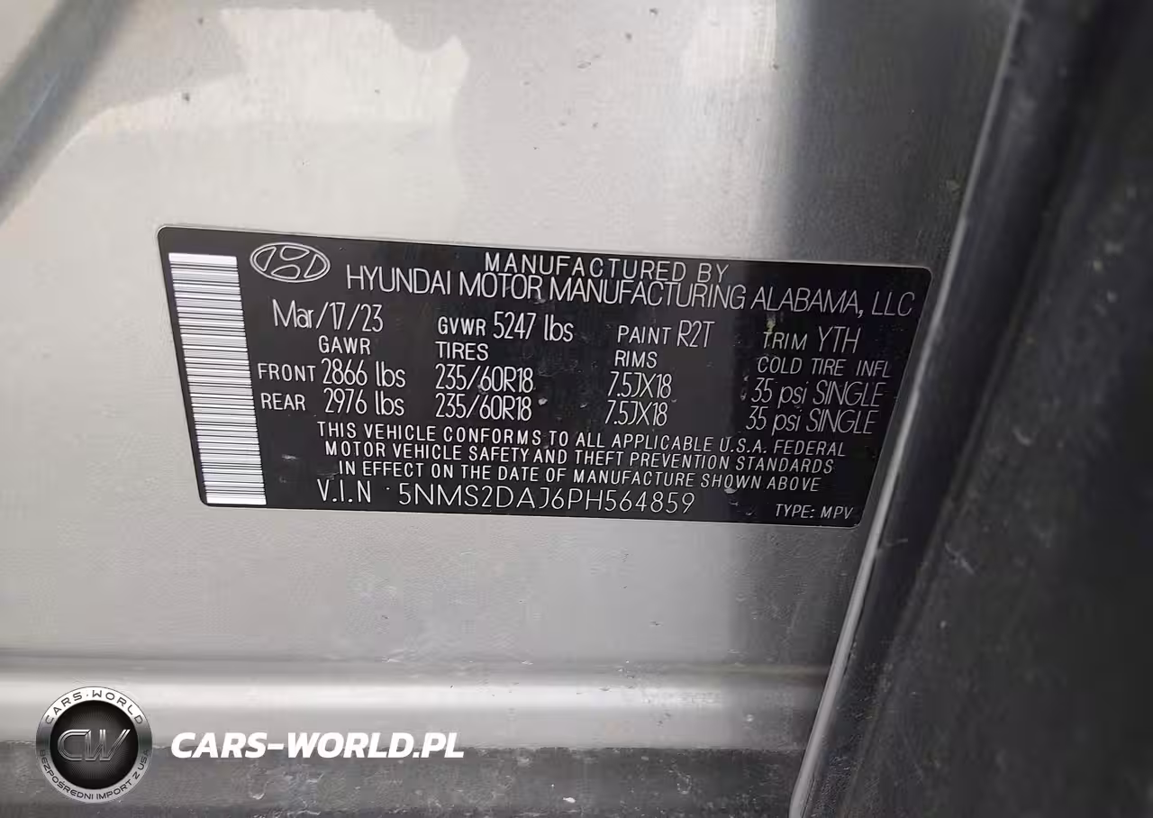 IAAI Nr: I-44351232 VIN: 5NMS2DAJ6PH564859 Port: Houston, TX