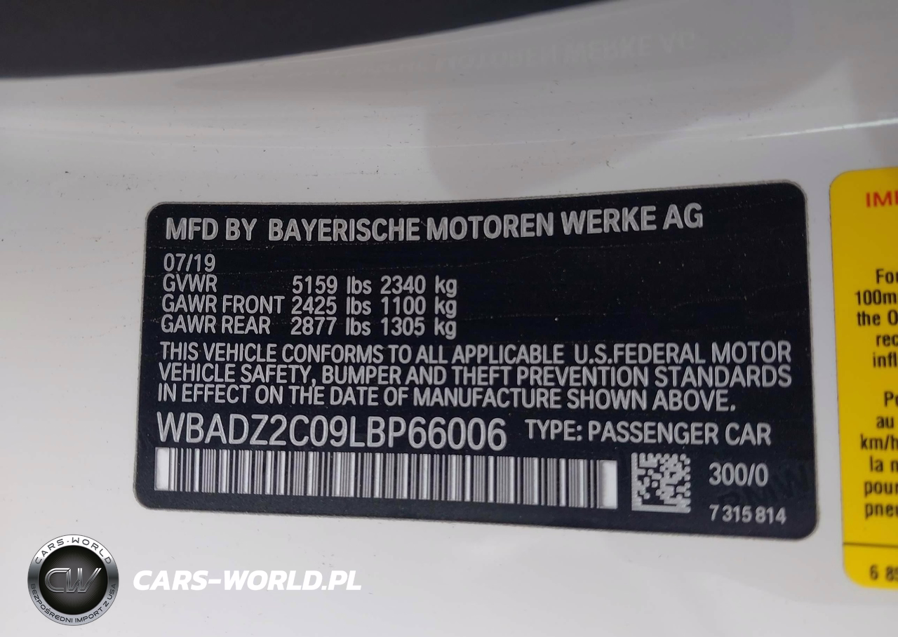 IAAI Nr: I-44351590 VIN: WBADZ2C09LBP66006 Port: Houston, TX