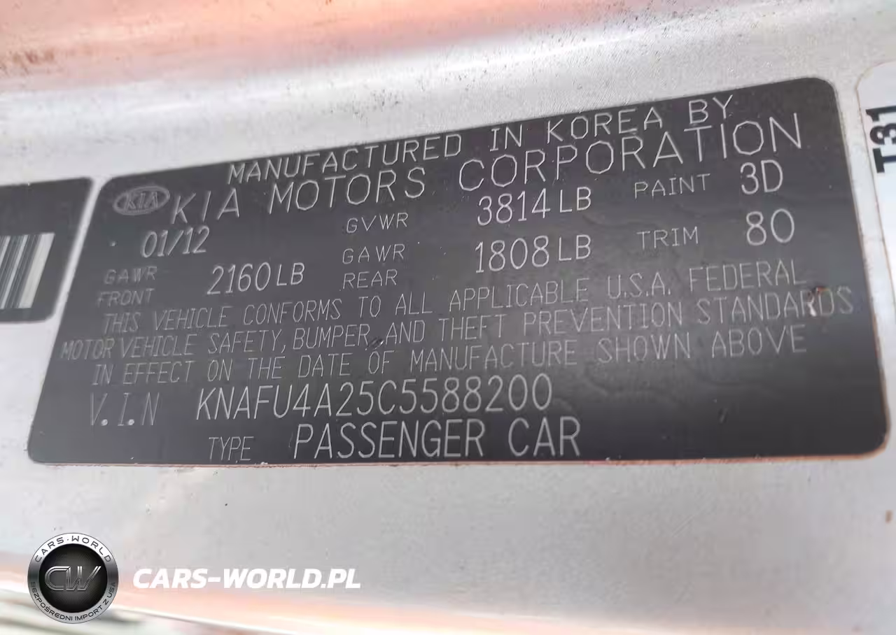 IAAI Nr: I-44353660 VIN: KNAFU4A25C5588200 Port: Indianapolis, IN