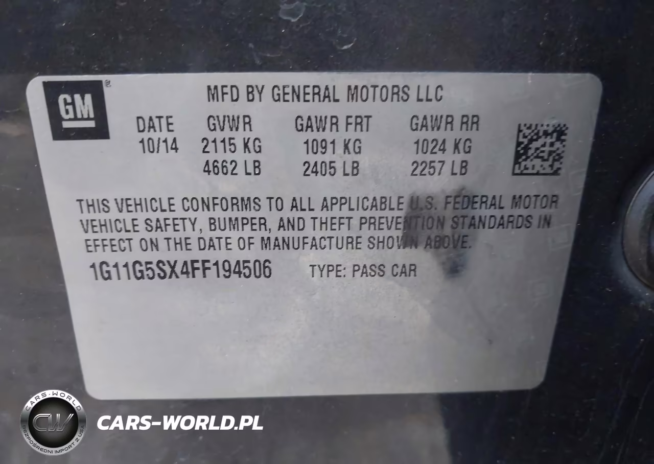 IAAI Nr: I-44354630 VIN: 1G11G5SX4FF194506 Port: Houston, TX