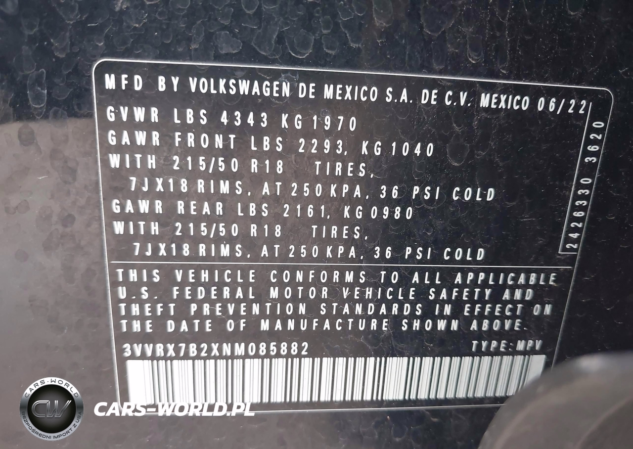 IAAI Nr: I-44354712 VIN: 3VVRX7B2XNM085882 Port: Houston, TX