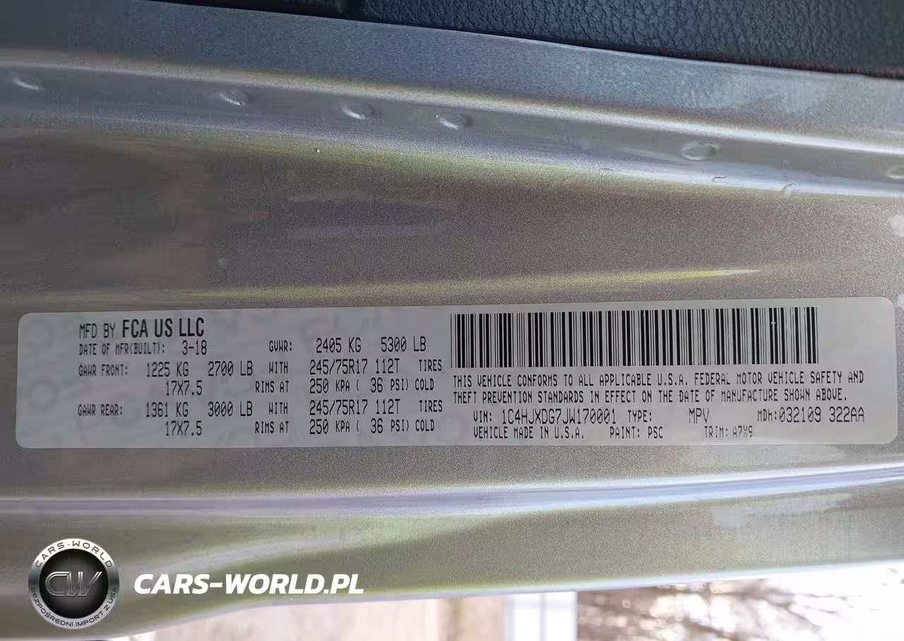 IAAI Nr: I-44355124 VIN: 1C4HJXDG7JW170001 Port: Savannah, GA