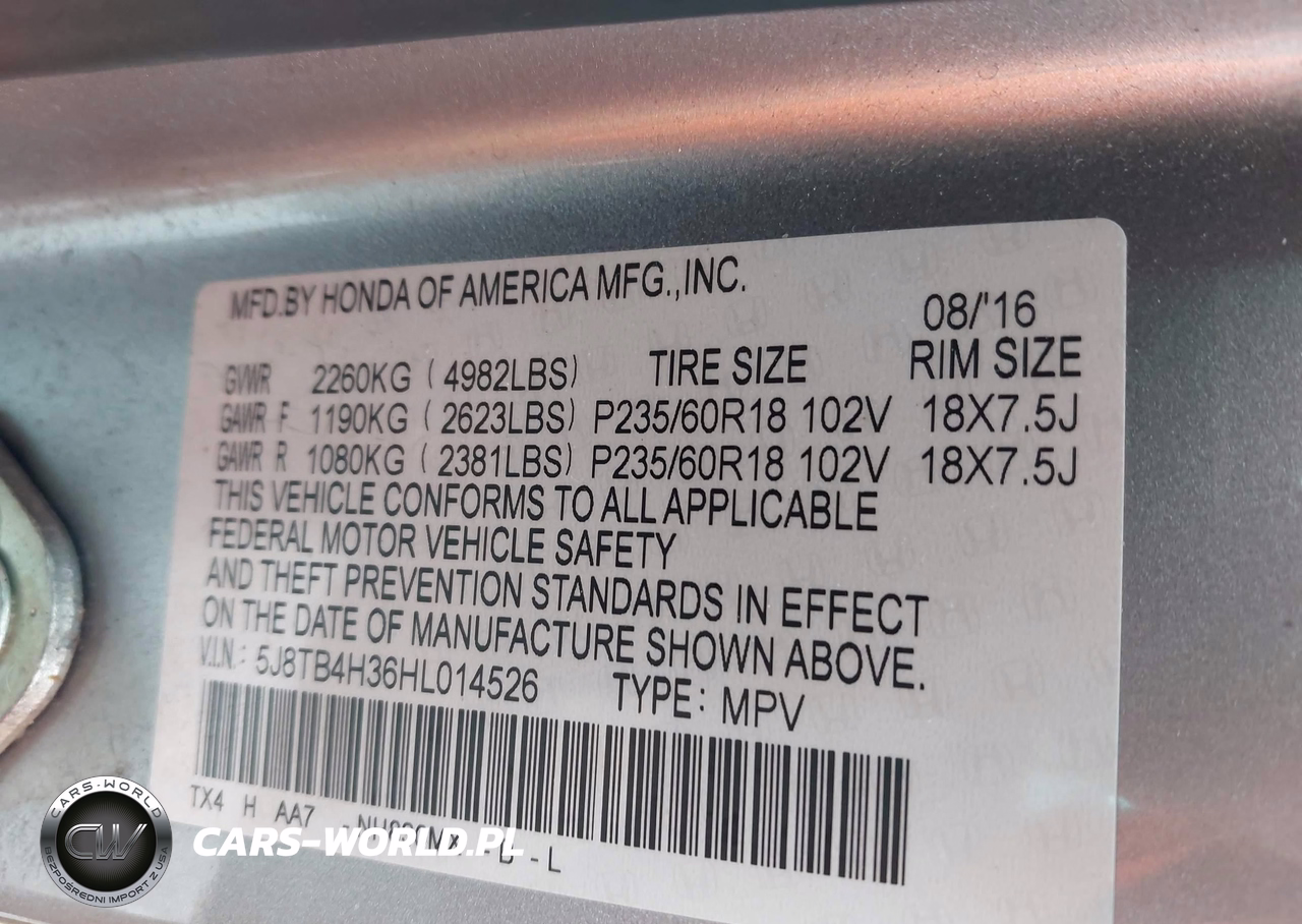 IAAI Nr: I-44356227 VIN: 5J8TB4H36HL014526 Port: Elizabeth, NJ