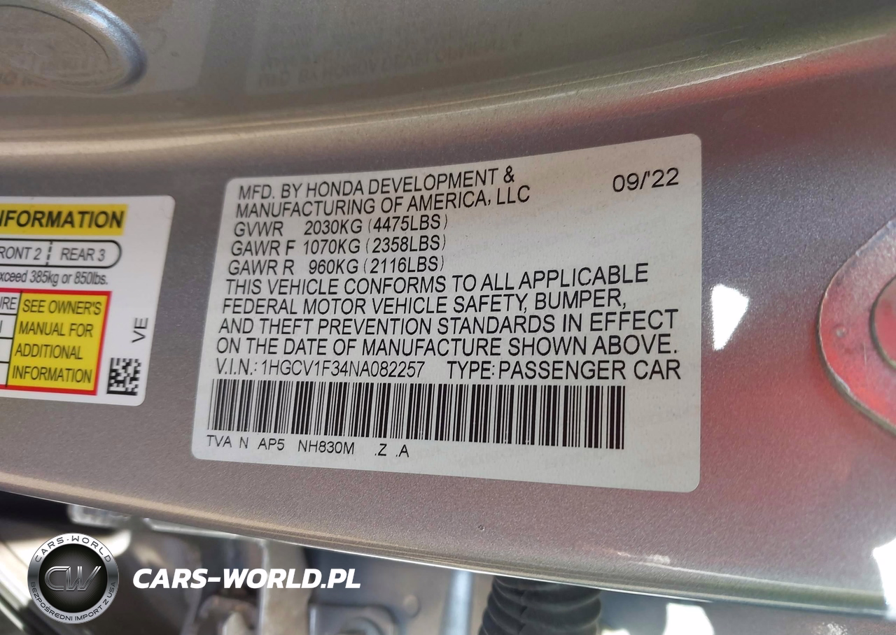 IAAI Nr: I-44356275 VIN: 1HGCV1F34NA082257 Port: Los Angeles, CA