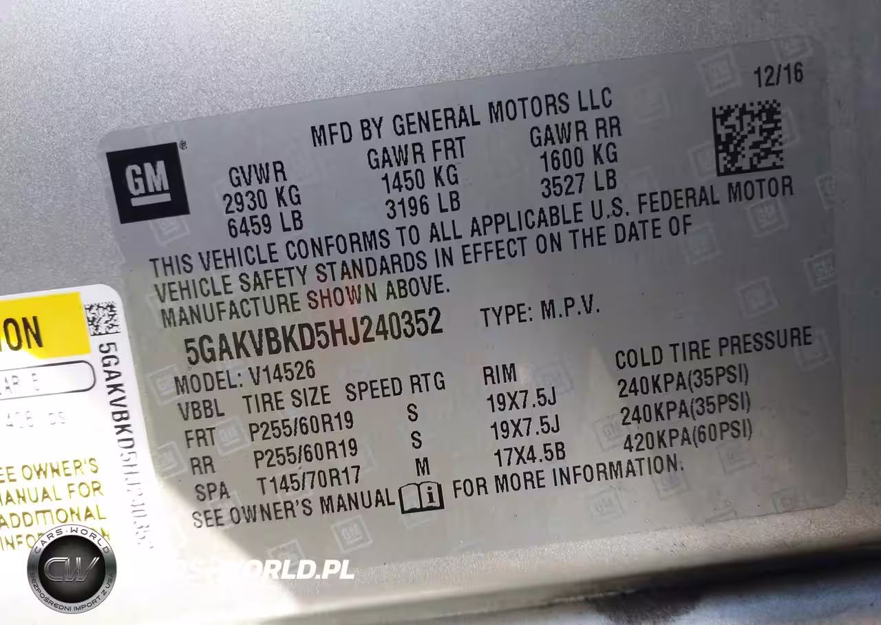 IAAI Nr: I-44356347 VIN: 5GAKVBKD5HJ240352 Port: Indianapolis, IN