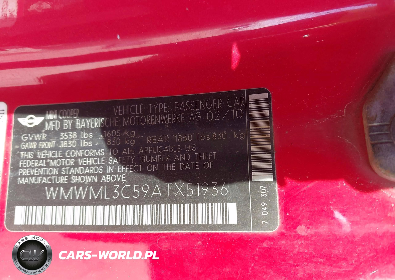 IAAI Nr: I-44357006 VIN: WMWML3C59ATX51936 Port: Houston, TX