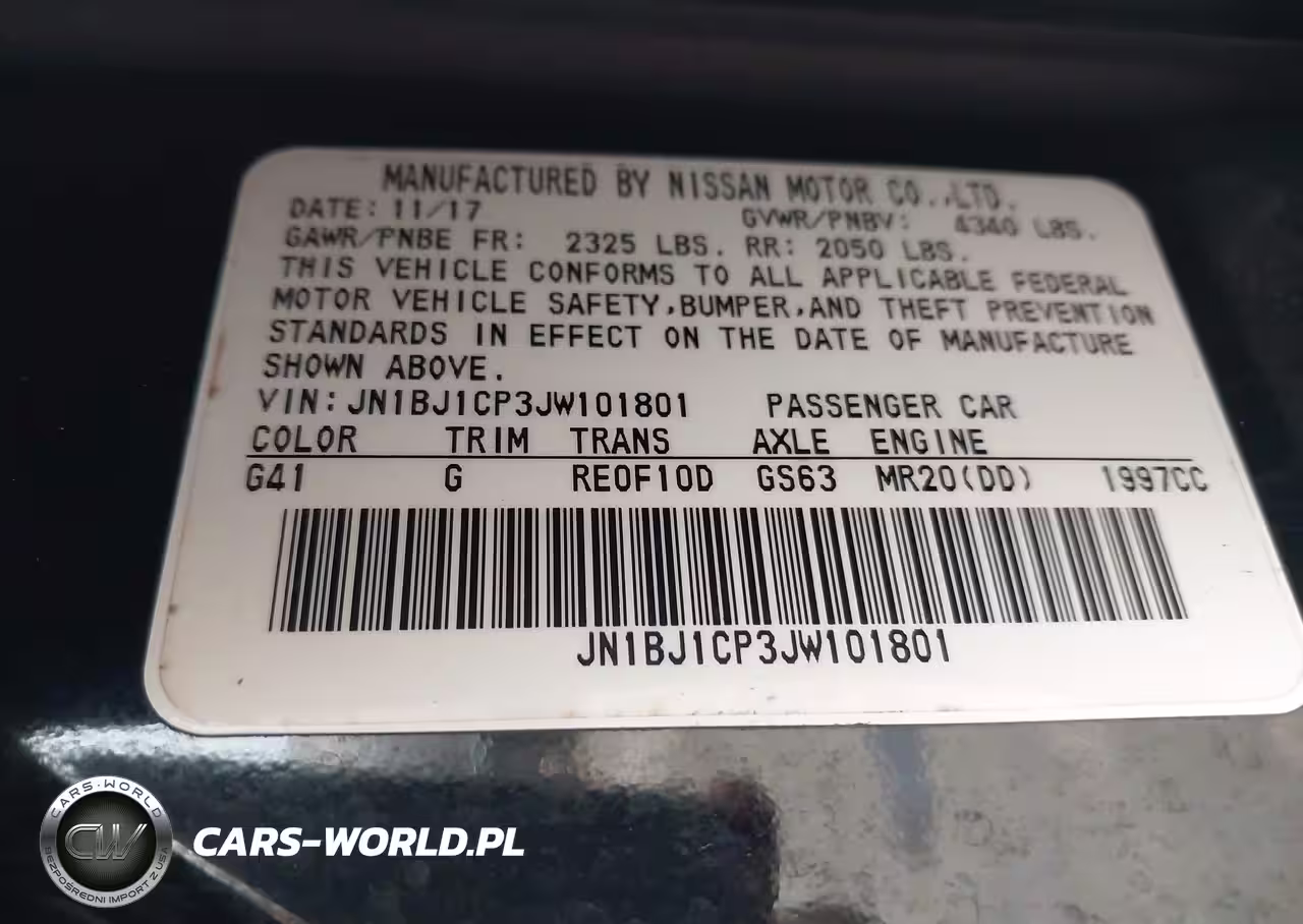 IAAI Nr: I-44358011 VIN: JN1BJ1CP3JW101801 Port: Savannah, GA