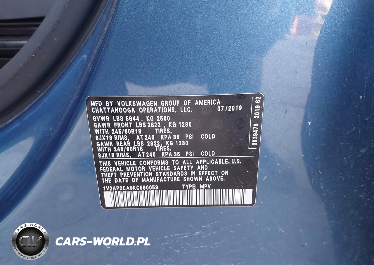 IAAI Nr: I-44359663 VIN: 1V2AP2CA9KC590053 Port: Indianapolis, IN