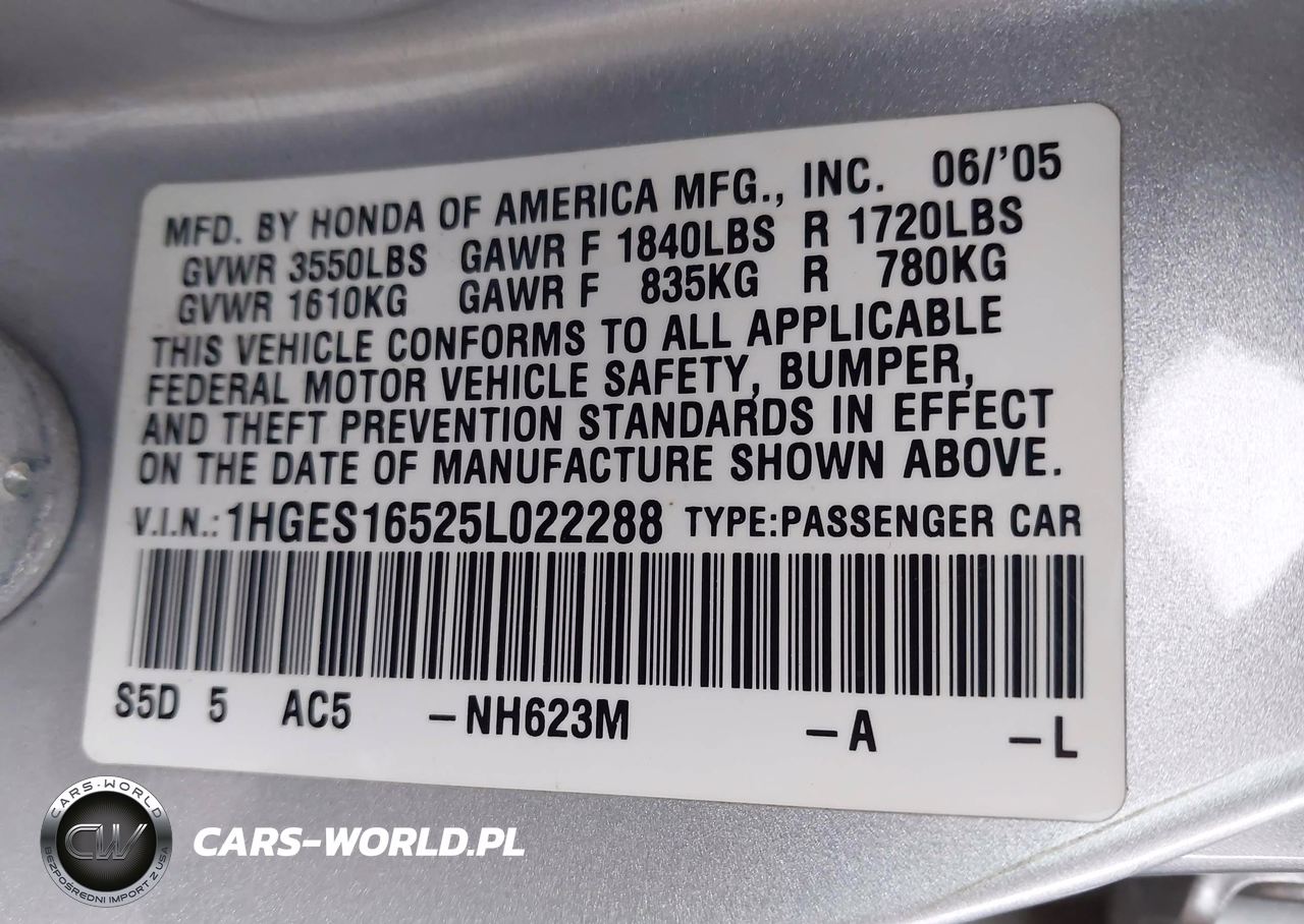 IAAI Nr: I-44360661 VIN: 1HGES16525L022288 Port: Los Angeles, CA