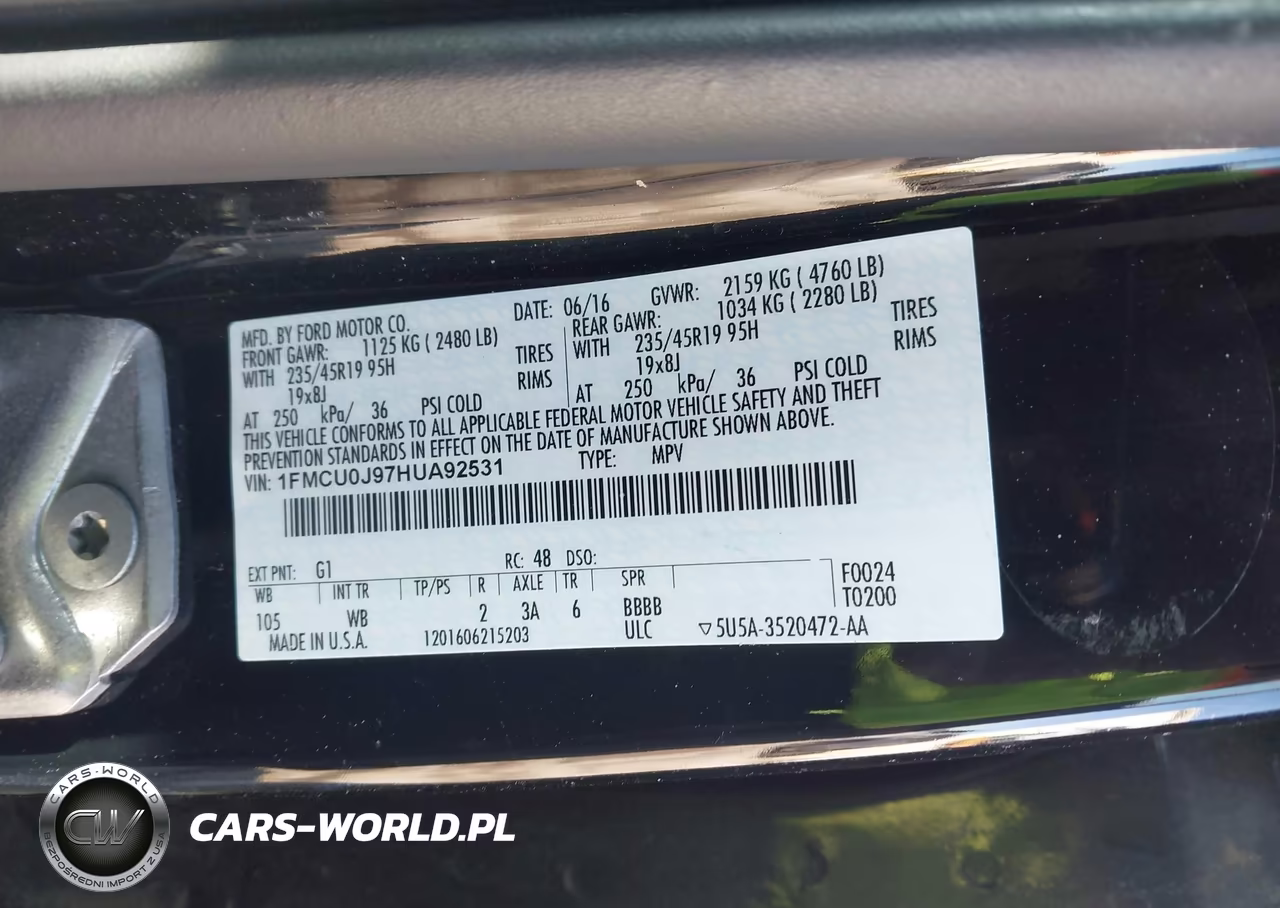 IAAI Nr: I-44361033 VIN: 1FMCU0J97HUA92531 Port: Indianapolis, IN