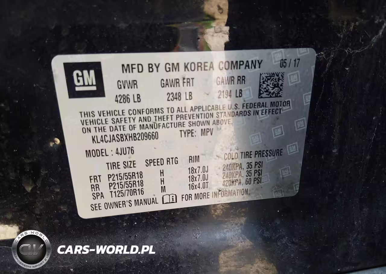 IAAI Nr: I-44361444 VIN: KL4CJASBXHB209660 Port: Indianapolis, IN