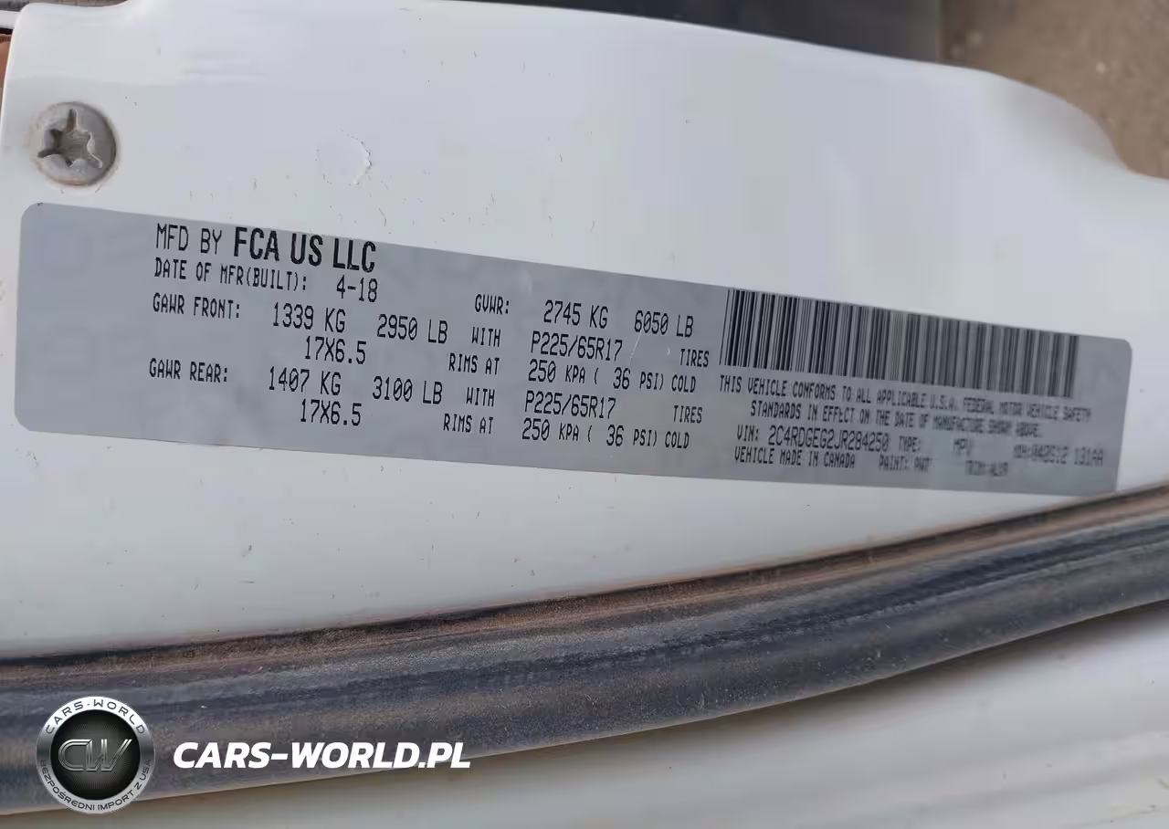 IAAI Nr: I-44361780 VIN: 2C4RDGEG2JR284250 Port: Los Angeles, CA