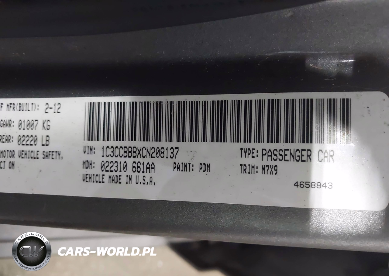 IAAI Nr: I-44363348 VIN: 1C3CCBBBXCN208137 Port: Indianapolis, IN