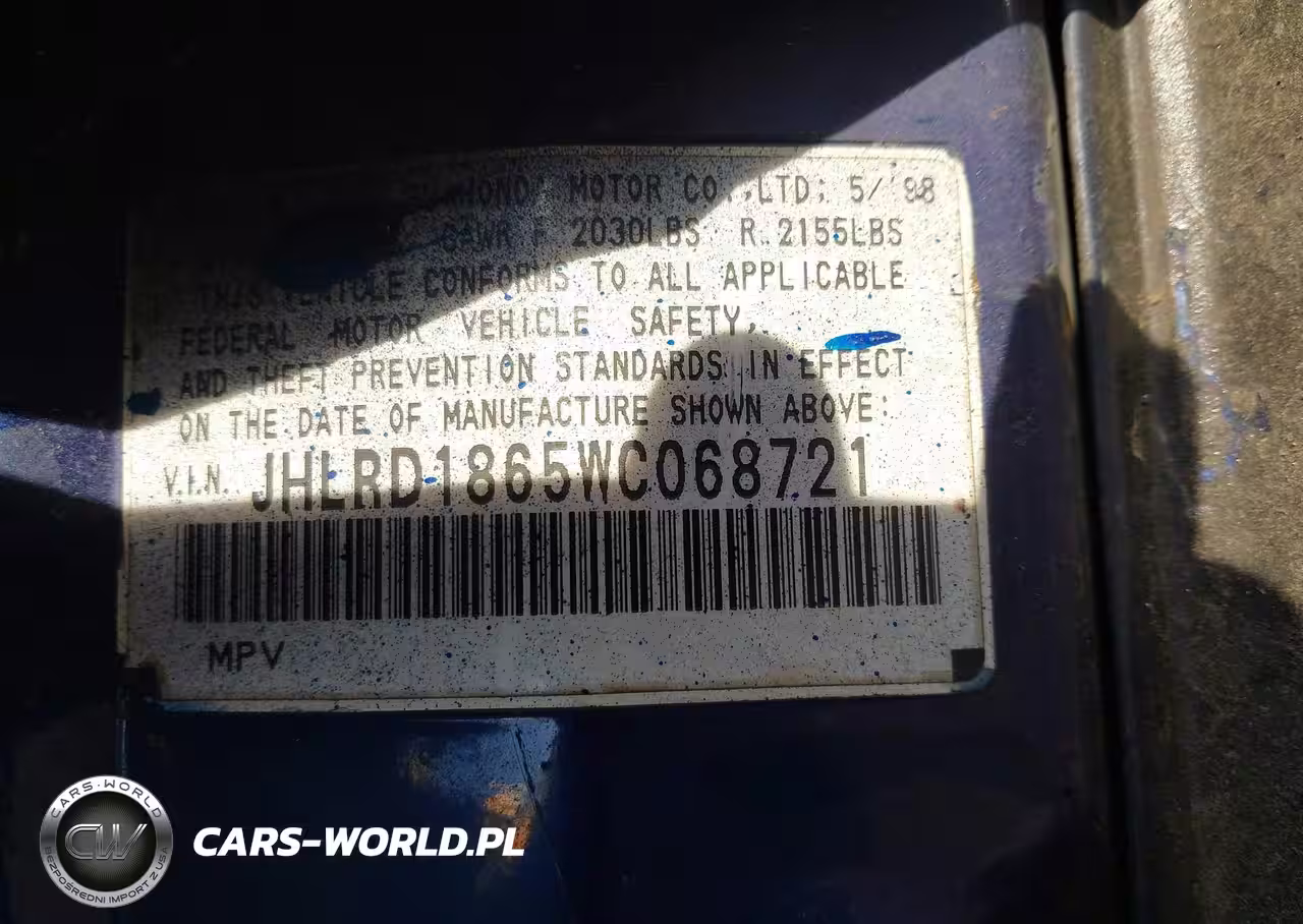 IAAI Nr: I-44365092 VIN: JHLRD1865WC068721 Port: Elizabeth, NJ