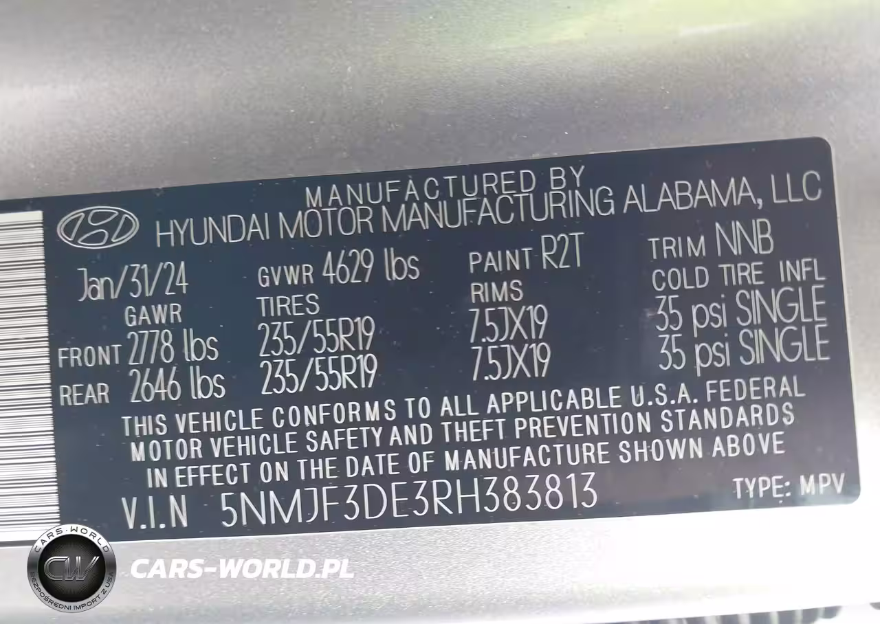 IAAI Nr: I-44365357 VIN: 5NMJF3DE3RH383813 Port: Savannah, GA