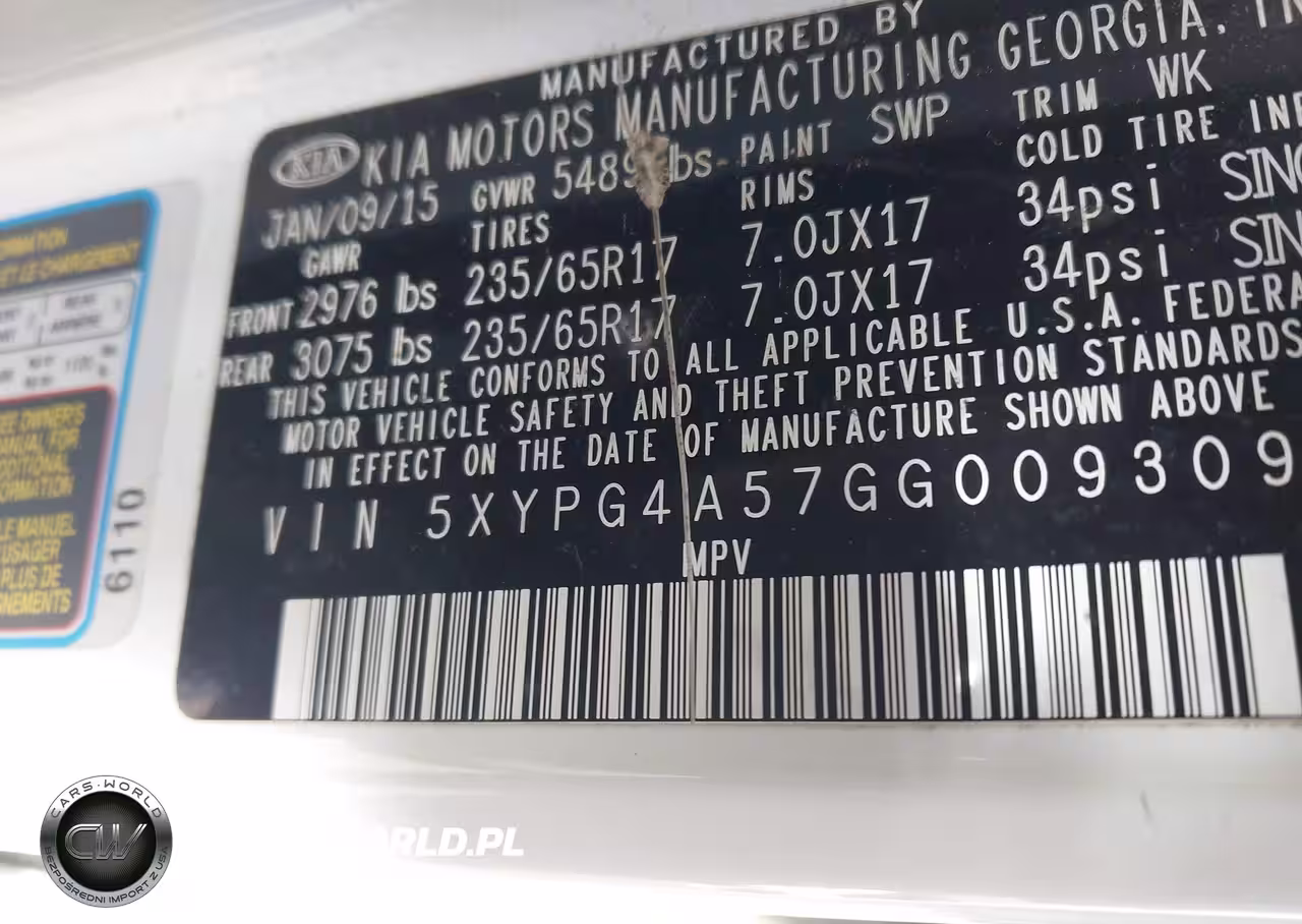 IAAI Nr: I-44365408 VIN: 5XYPG4A57GG009309 Port: Elizabeth, NJ