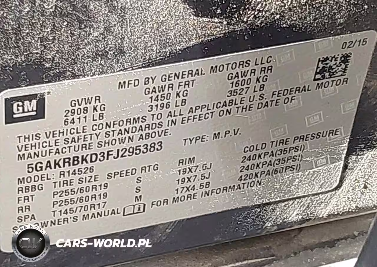 IAAI Nr: I-44366172 VIN: 5GAKRBKD3FJ295383 Port: Houston, TX