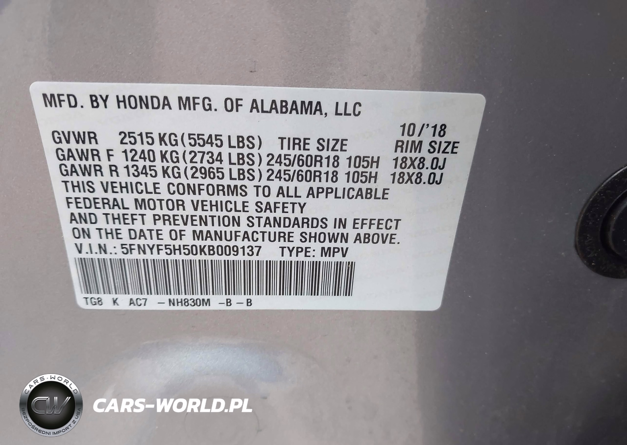 5FNYF5H50KB009137