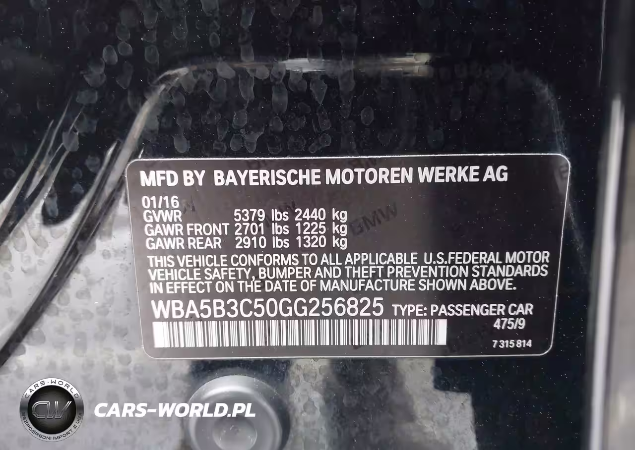 IAAI Nr: I-44368119 VIN: WBA5B3C50GG256825 Port: Elizabeth, NJ