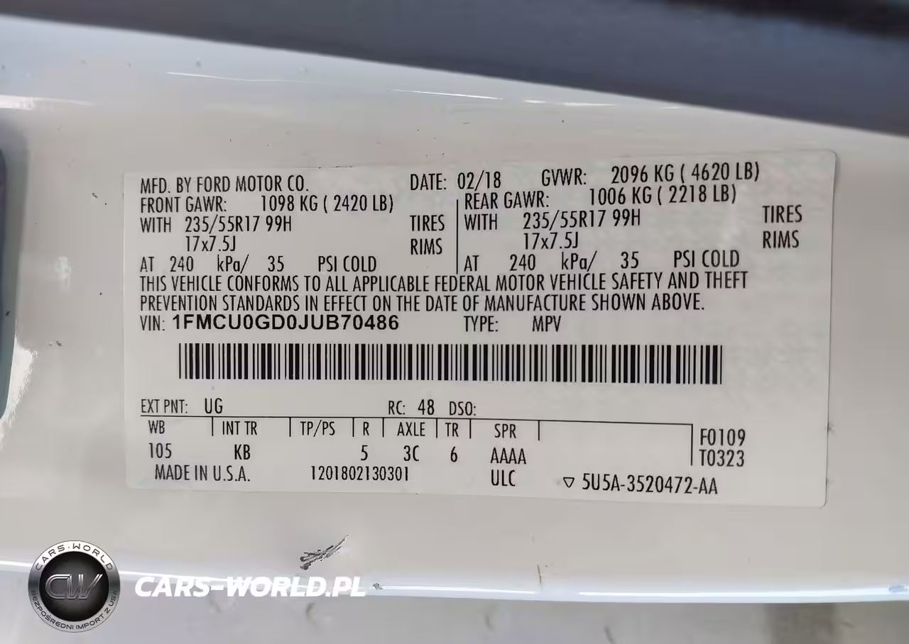 IAAI Nr: I-44369777 VIN: 1FMCU0GD0JUB70486 Port: Houston, TX