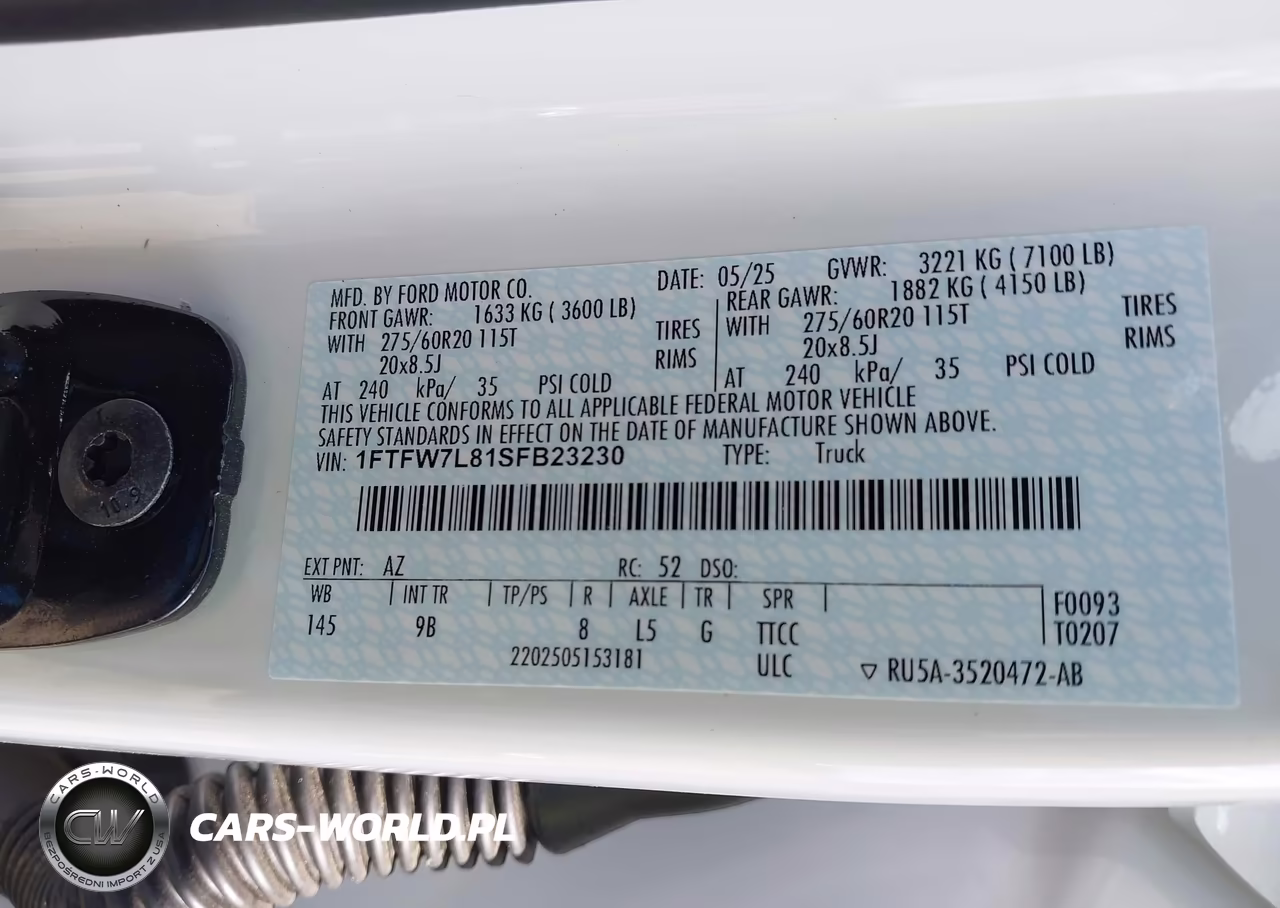 IAAI Nr: I-44371050 VIN: 1FTFW7L81SFB23230 Port: Houston, TX