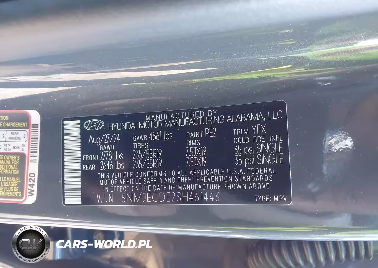 IAAI Nr: I-44371316 VIN: 5NMJECDE2SH461443 Port: Savannah, GA