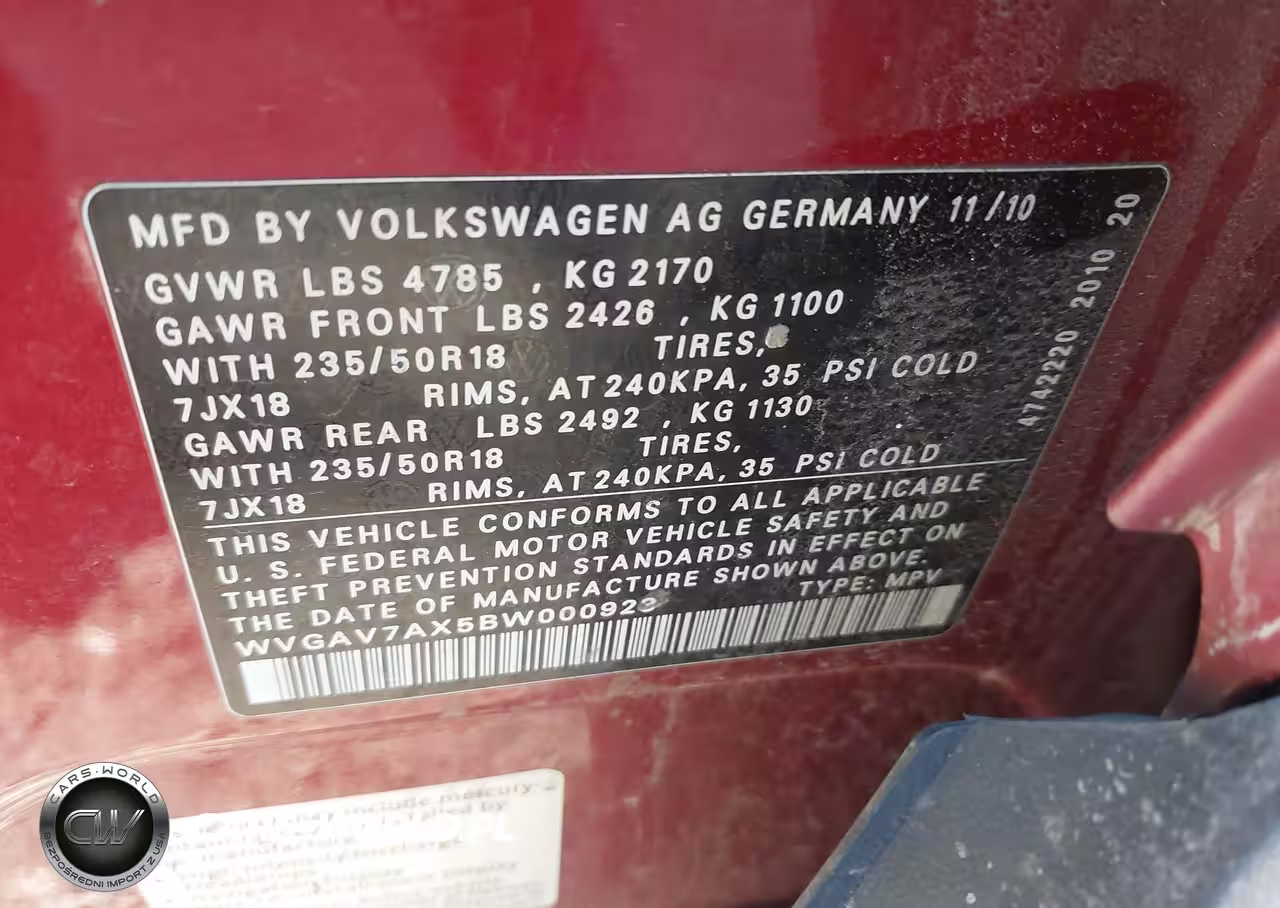 IAAI Nr: I-44373571 VIN: WVGAV7AX5BW000923 Port: Indianapolis, IN